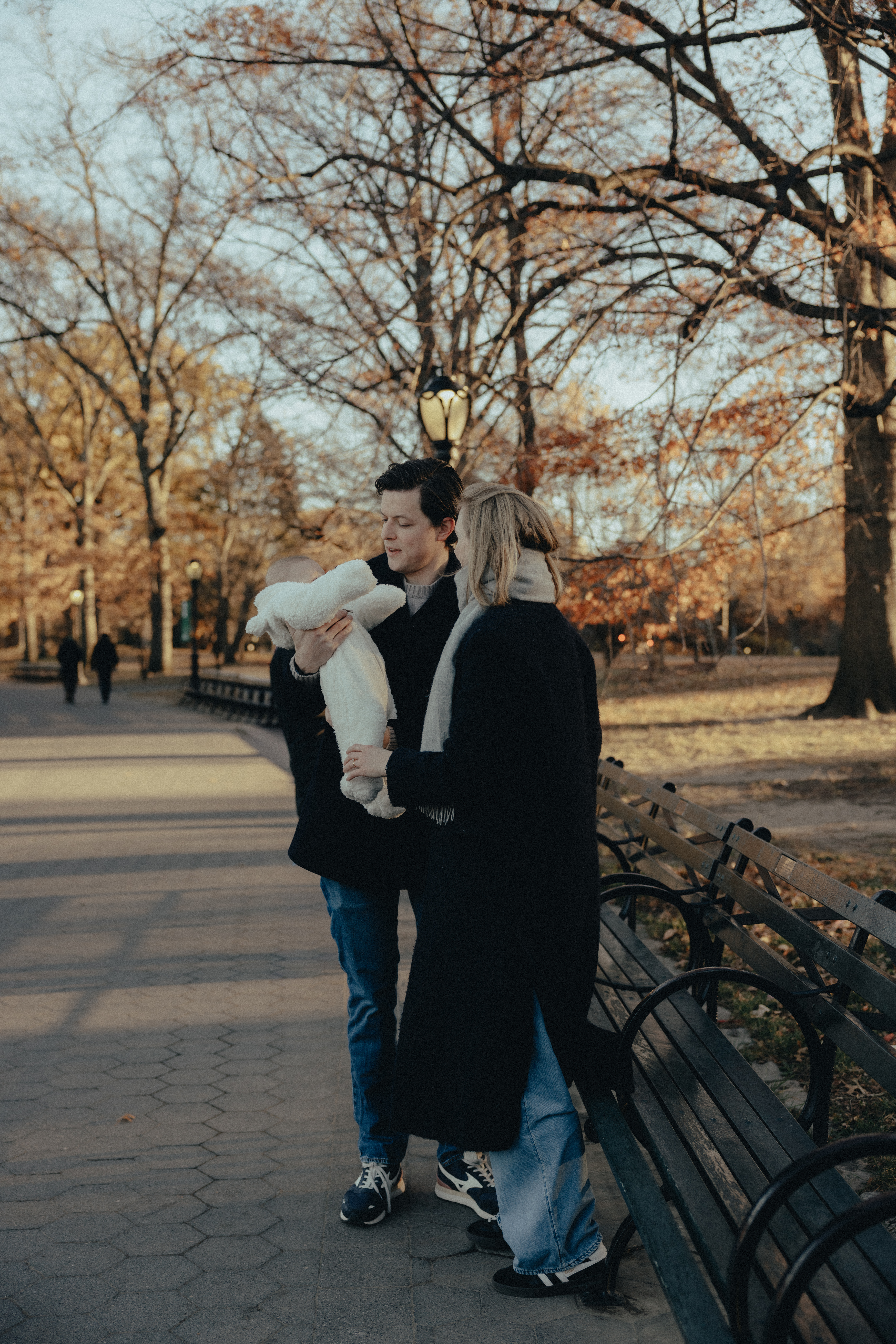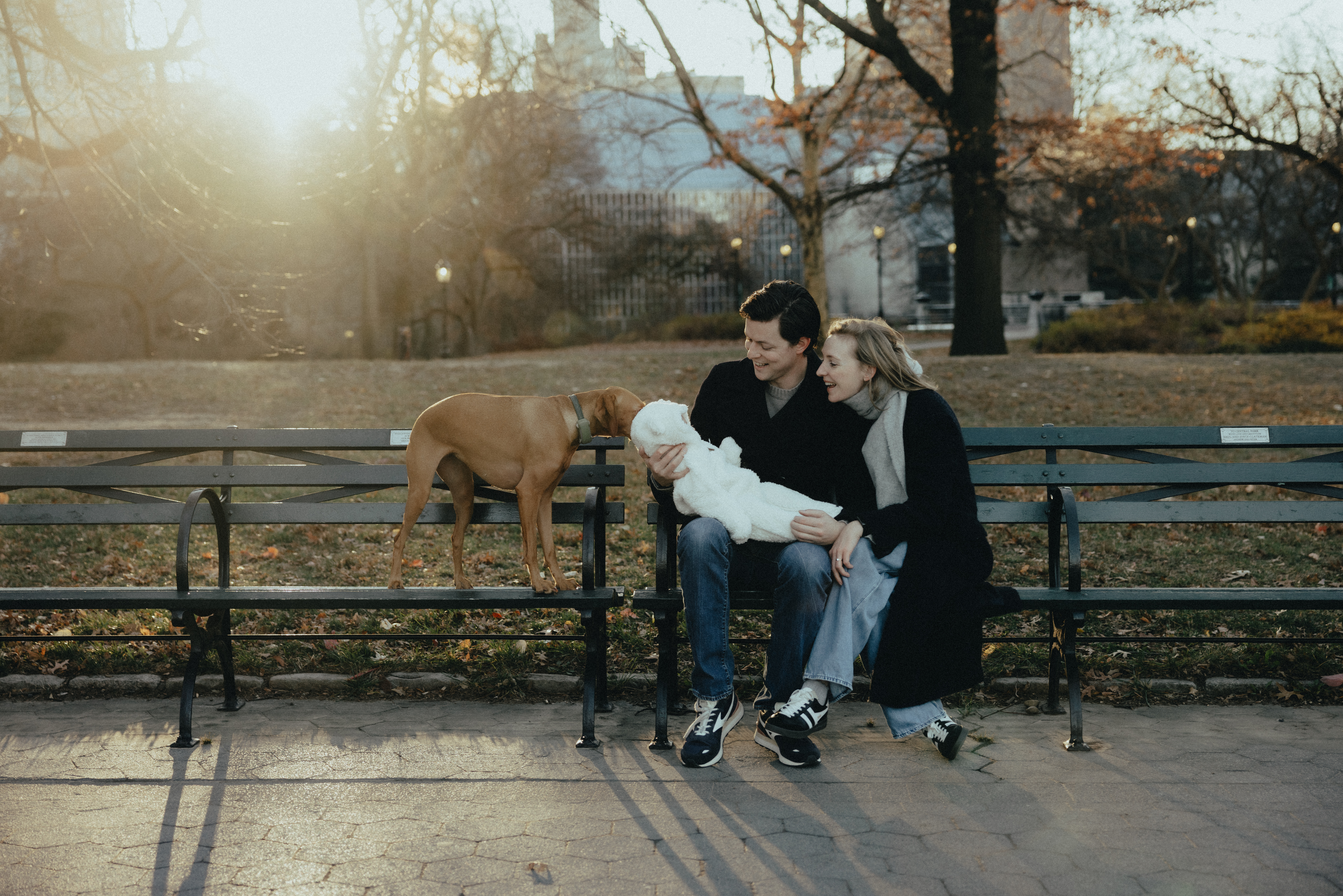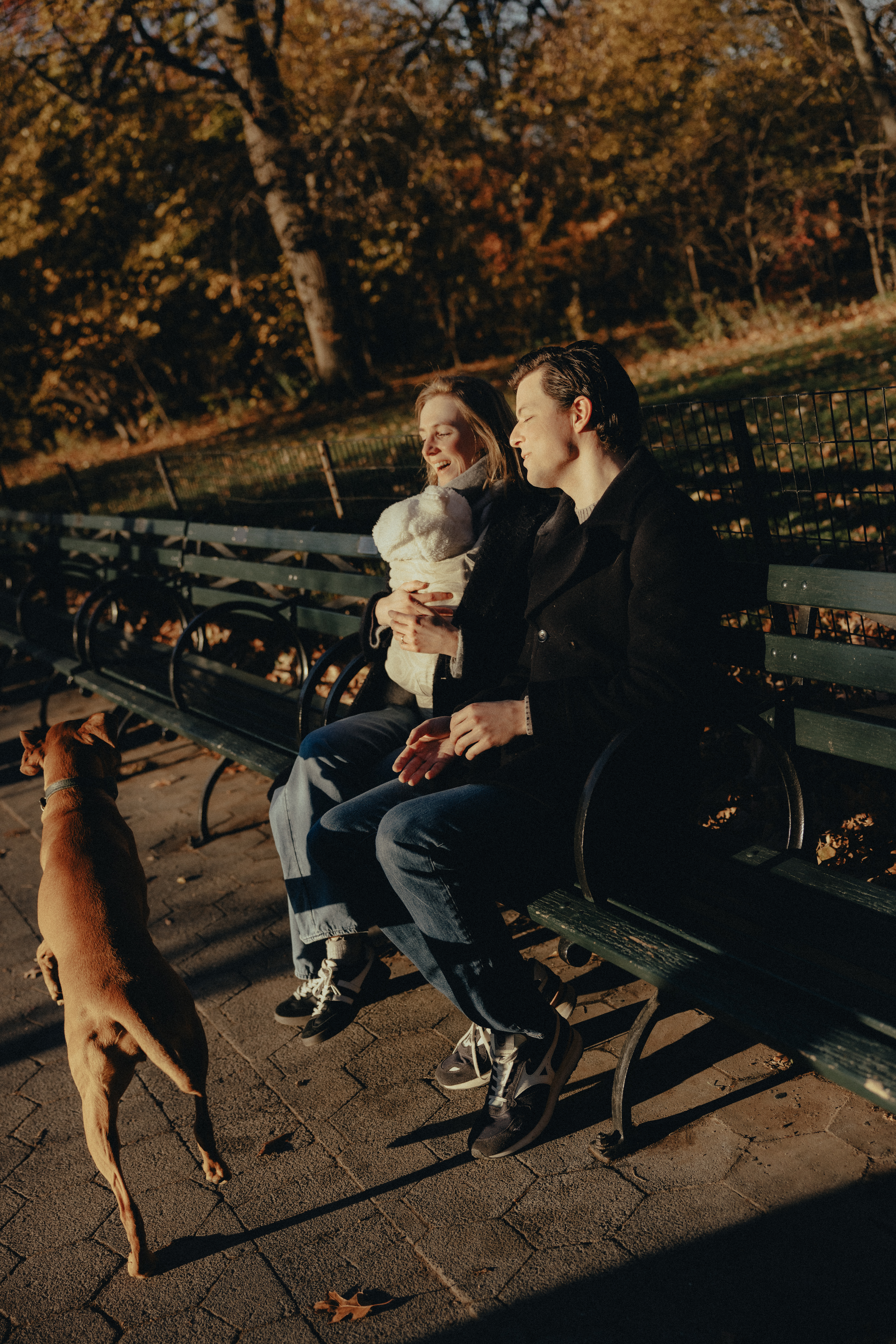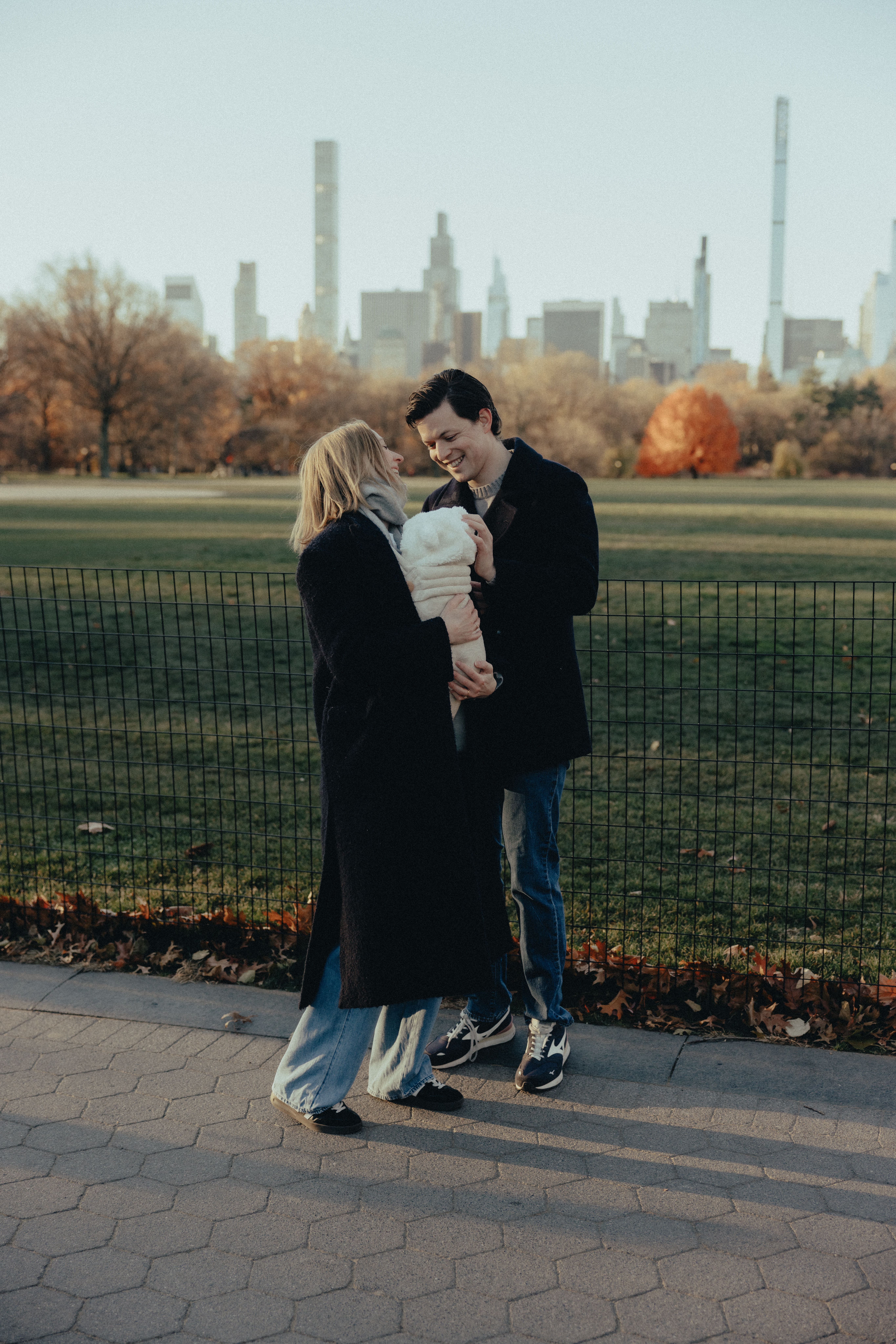 For this Upper West Side NYC family session, we met early for a quiet morning walk through Central Park, the same walk this family takes most days with their dog Donna and their new baby. It’s part of their rhythm.