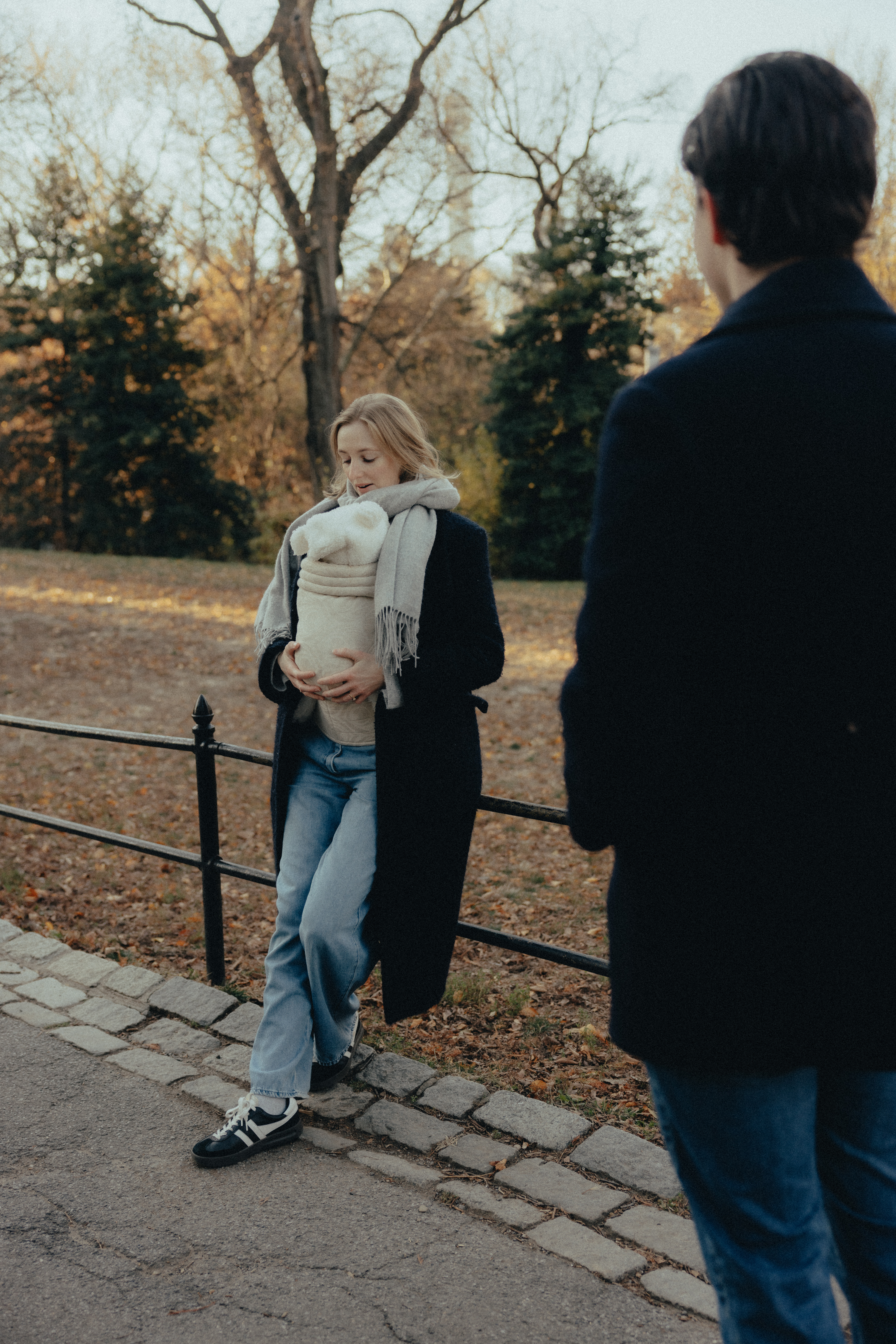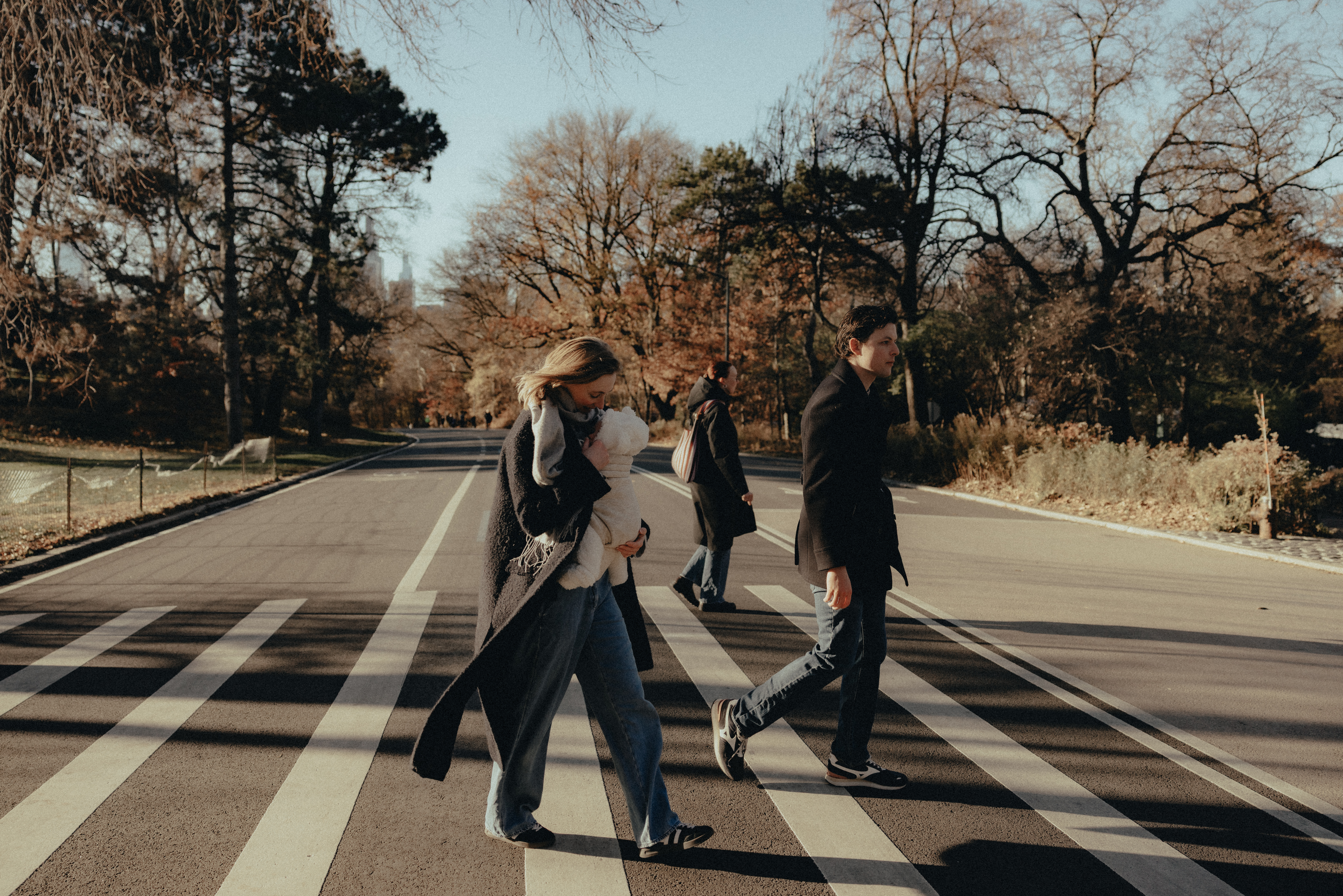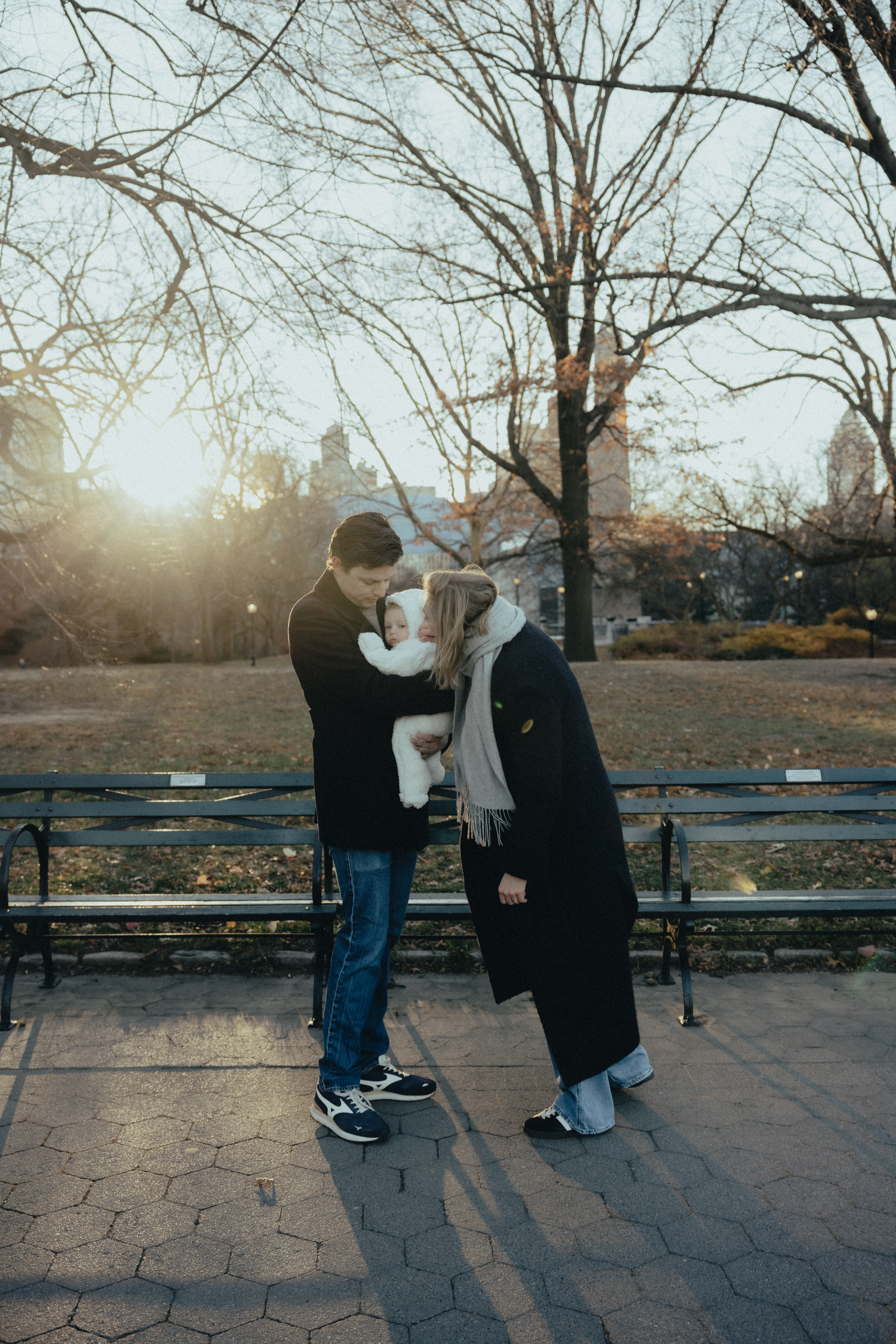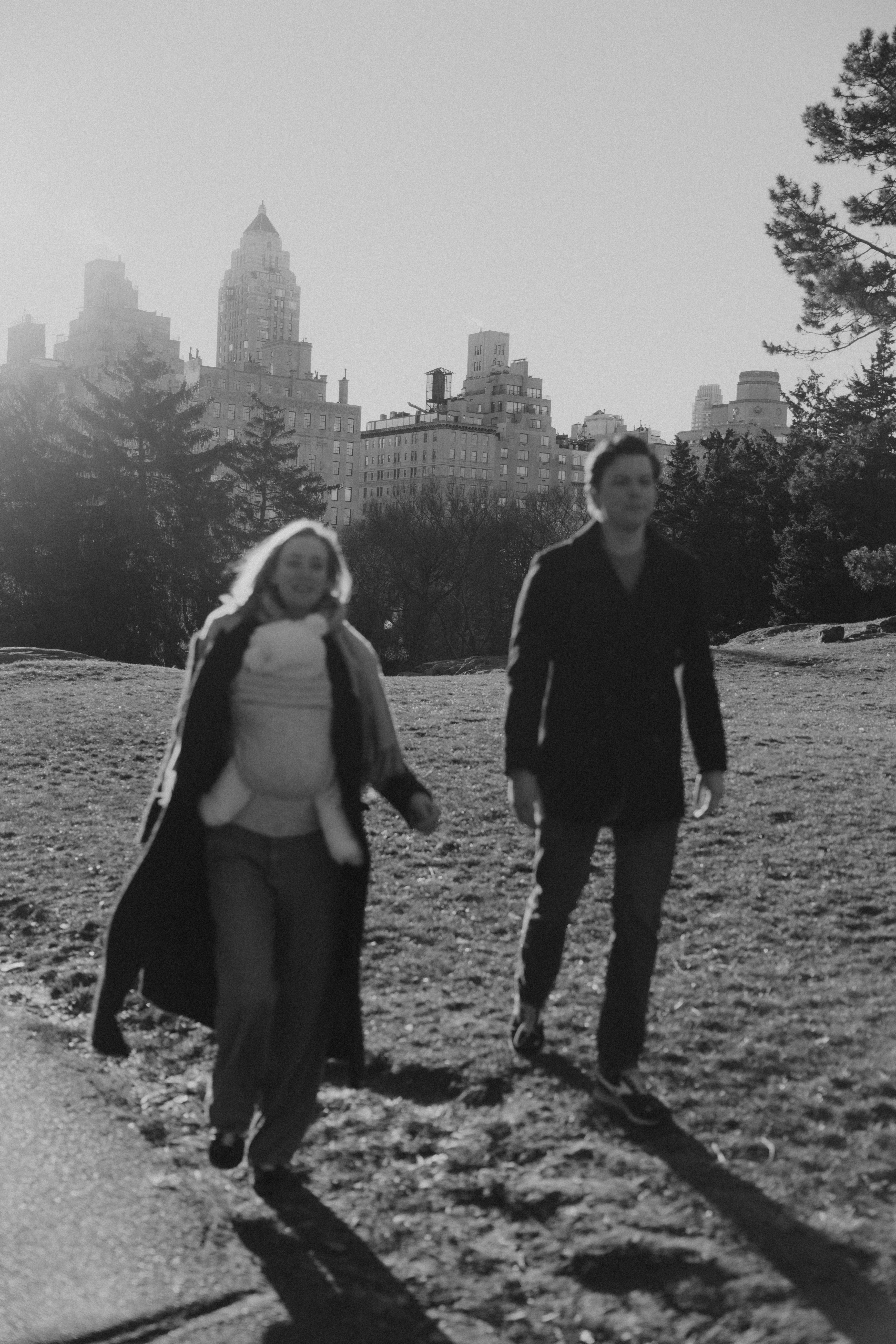 For this Upper West Side NYC family session, we met early for a quiet morning walk through Central Park, the same walk this family takes most days with their dog Donna and their new baby. It’s part of their rhythm.
