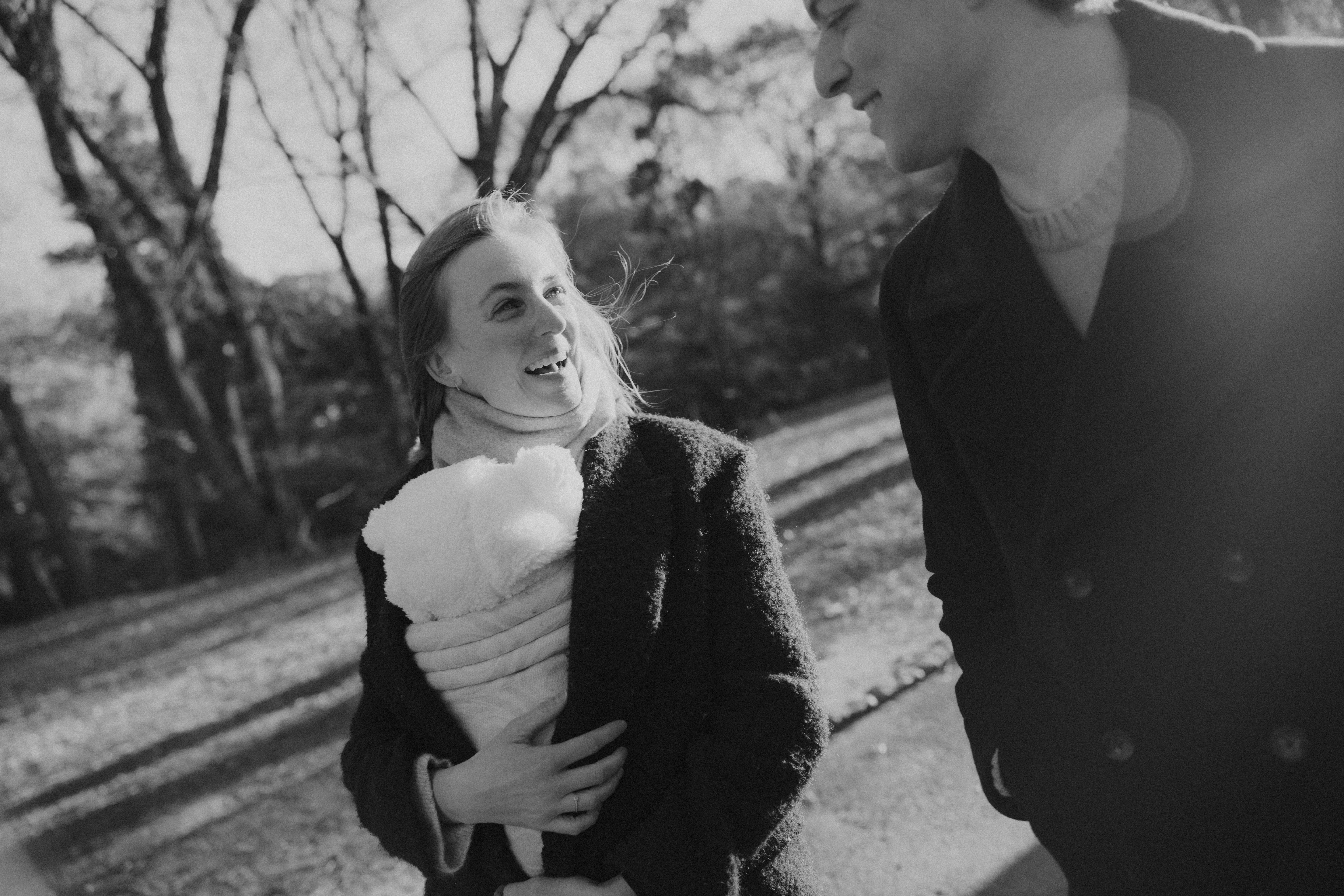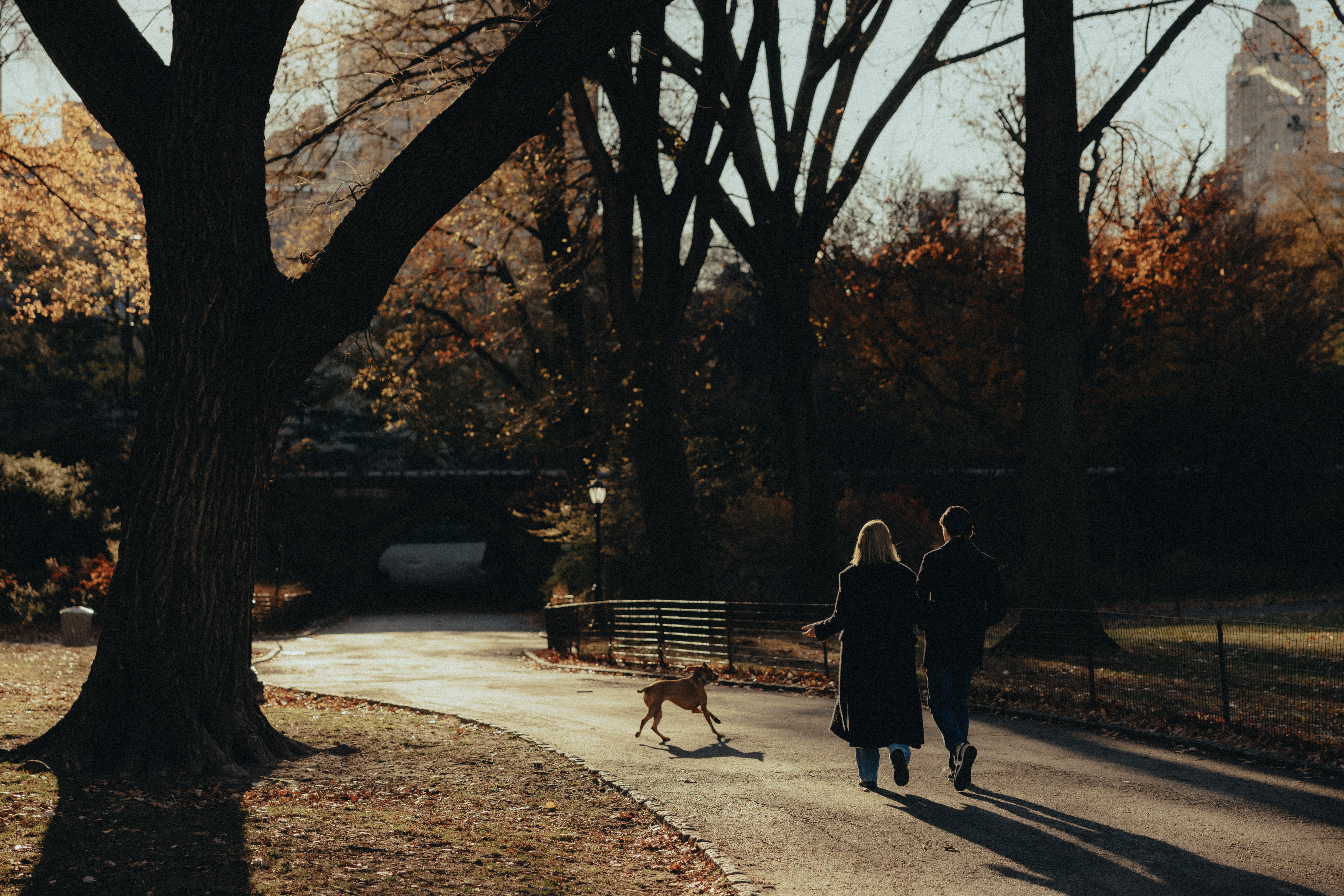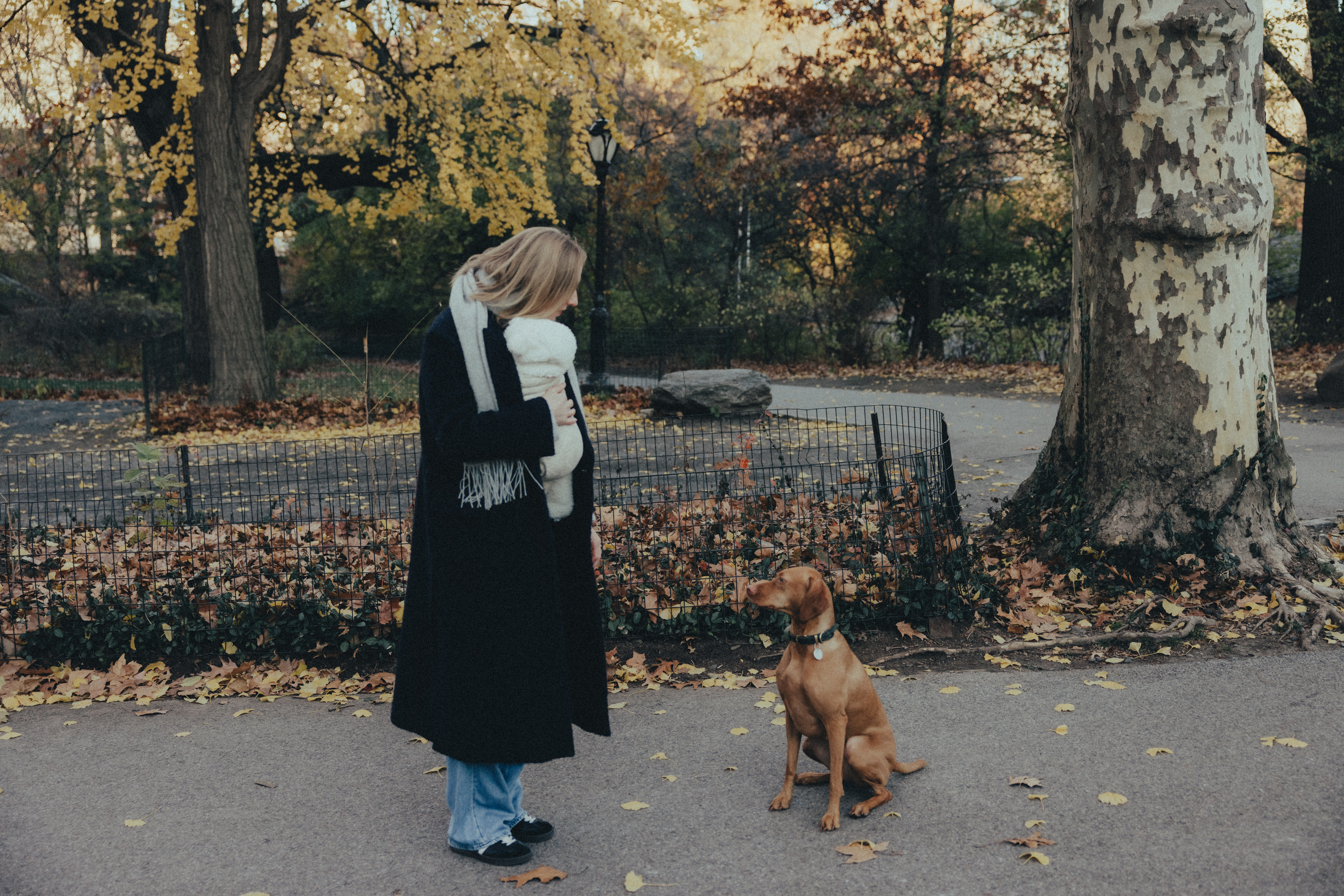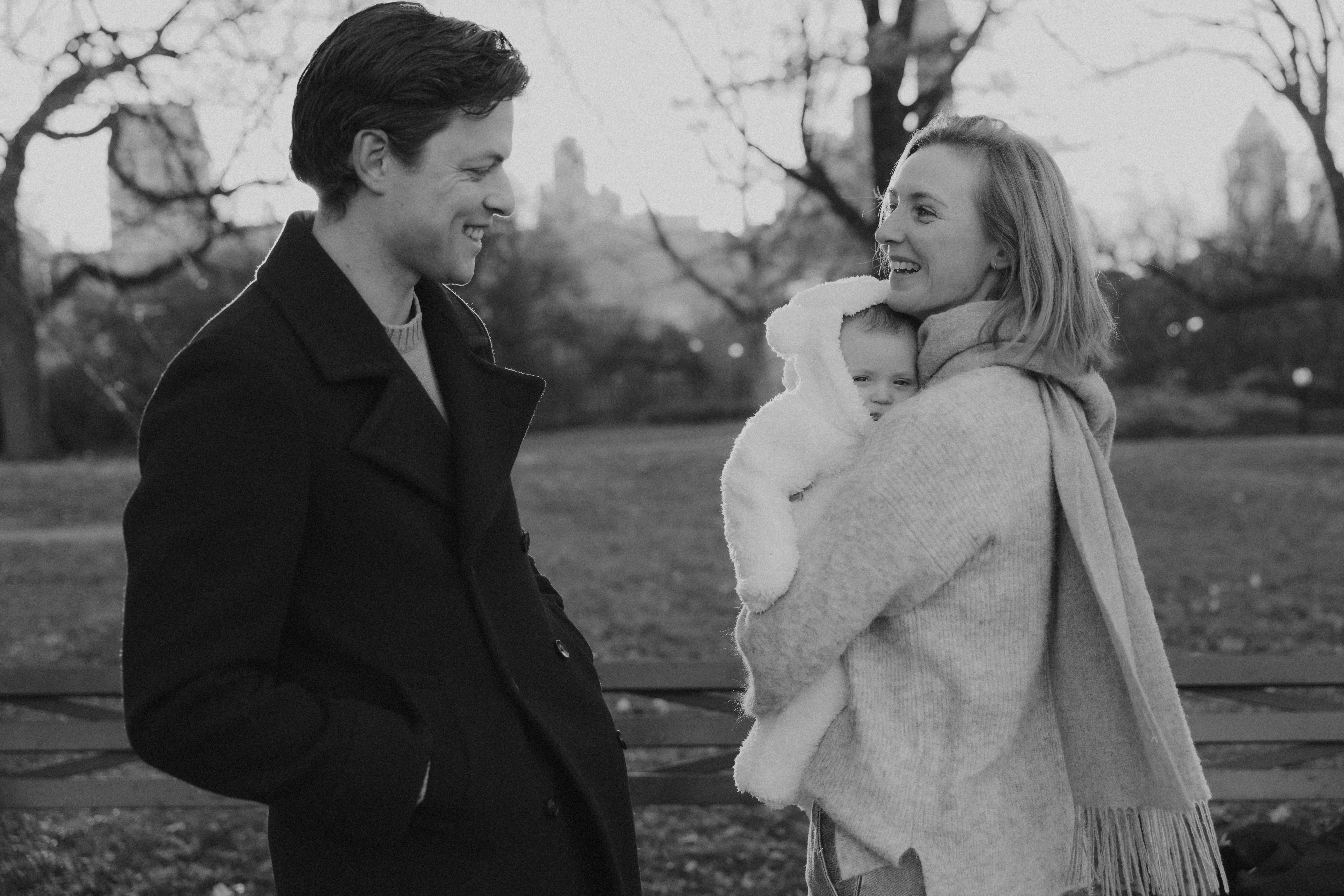 For this Upper West Side NYC family session, we met early for a quiet morning walk through Central Park, the same walk this family takes most days with their dog Donna and their new baby. It’s part of their rhythm.