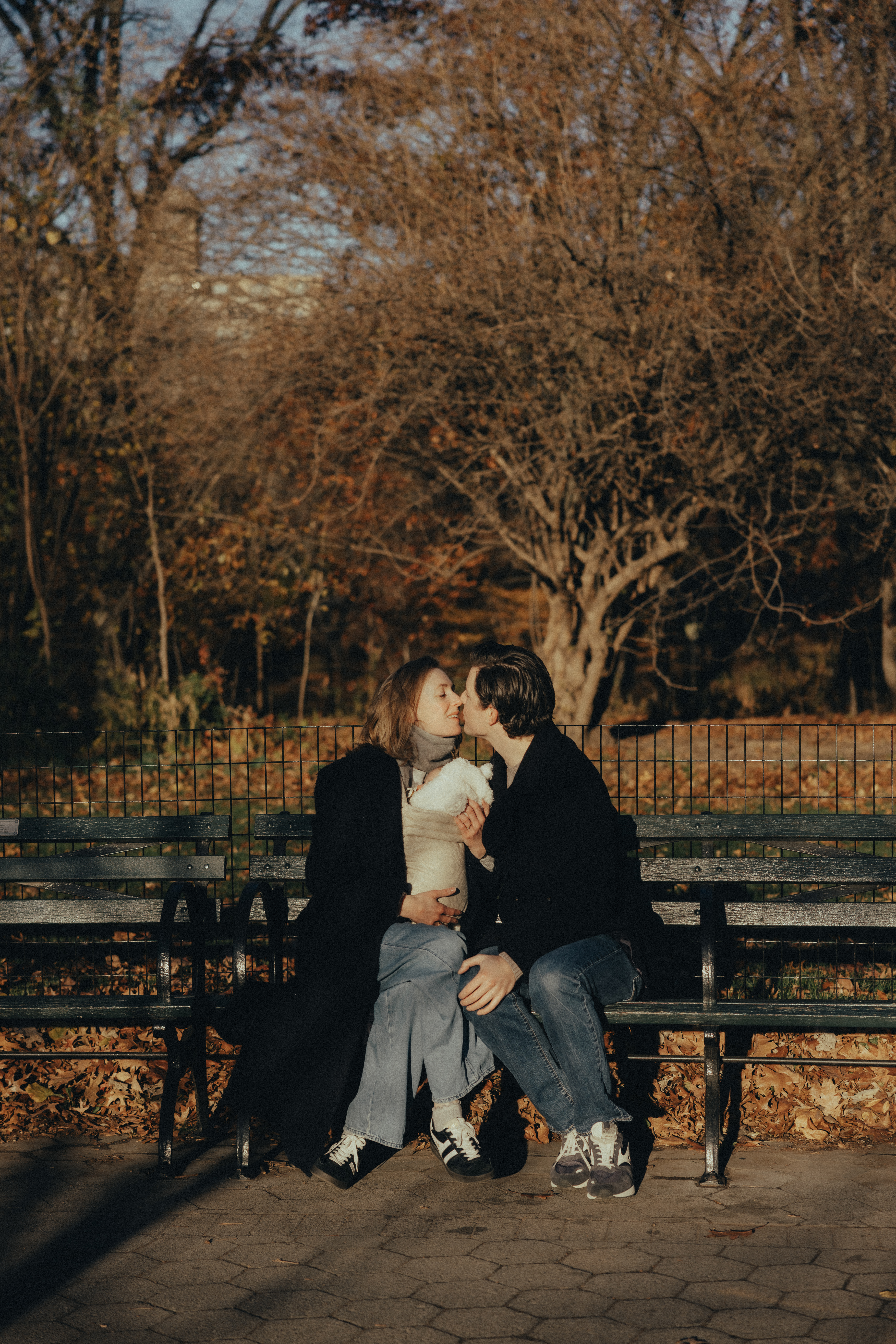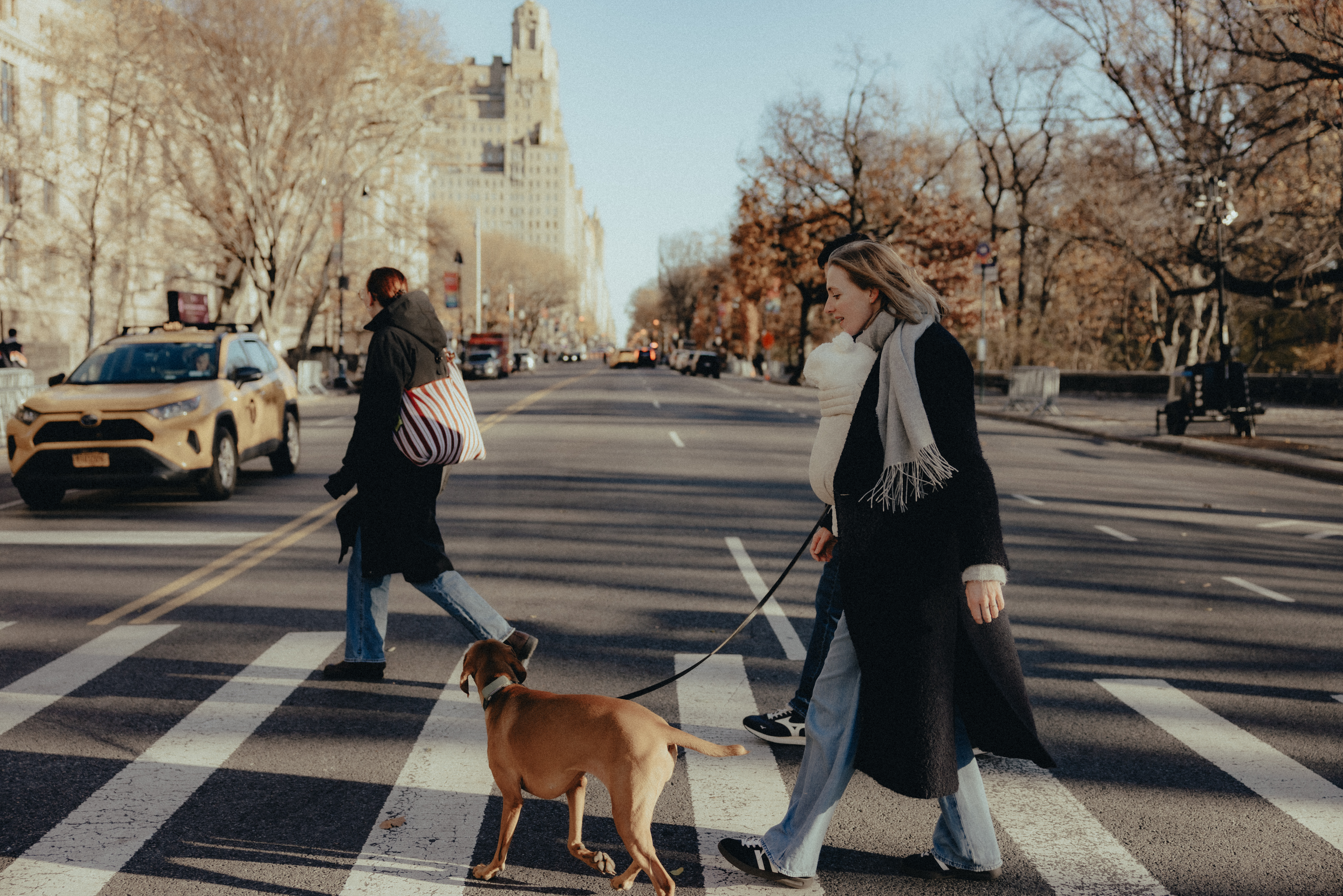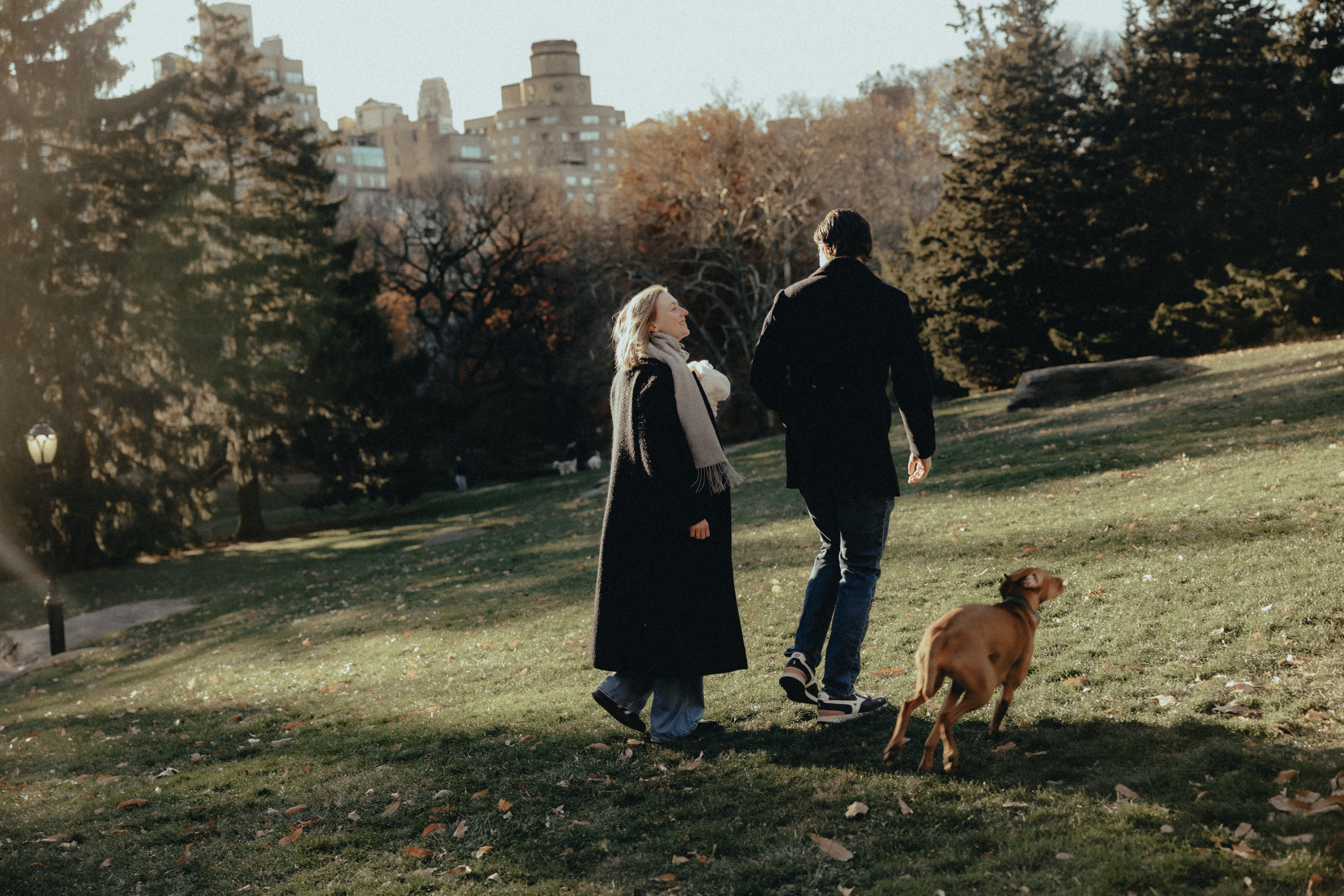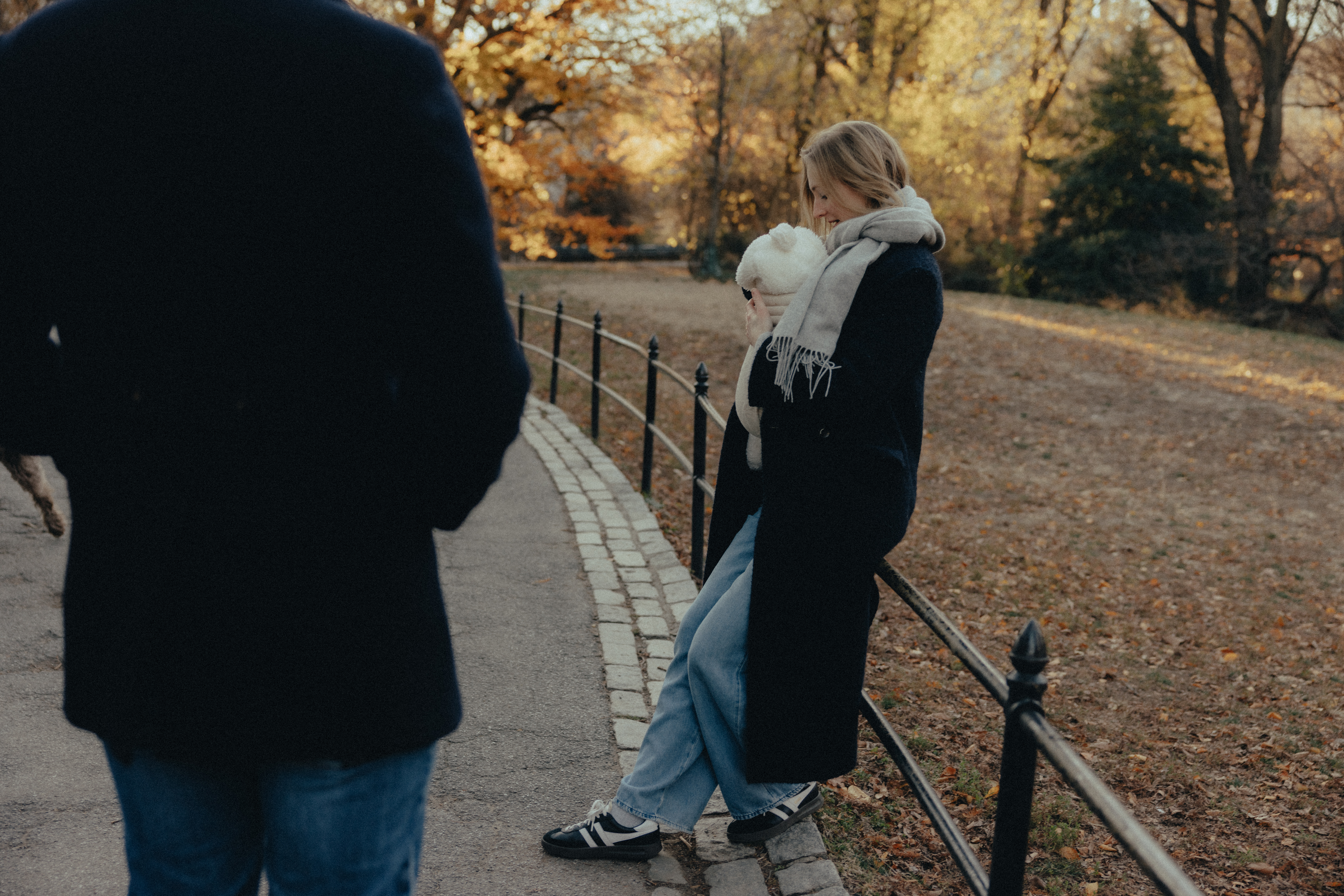 For this Upper West Side NYC family session, we met early for a quiet morning walk through Central Park, the same walk this family takes most days with their dog Donna and their new baby. It’s part of their rhythm.