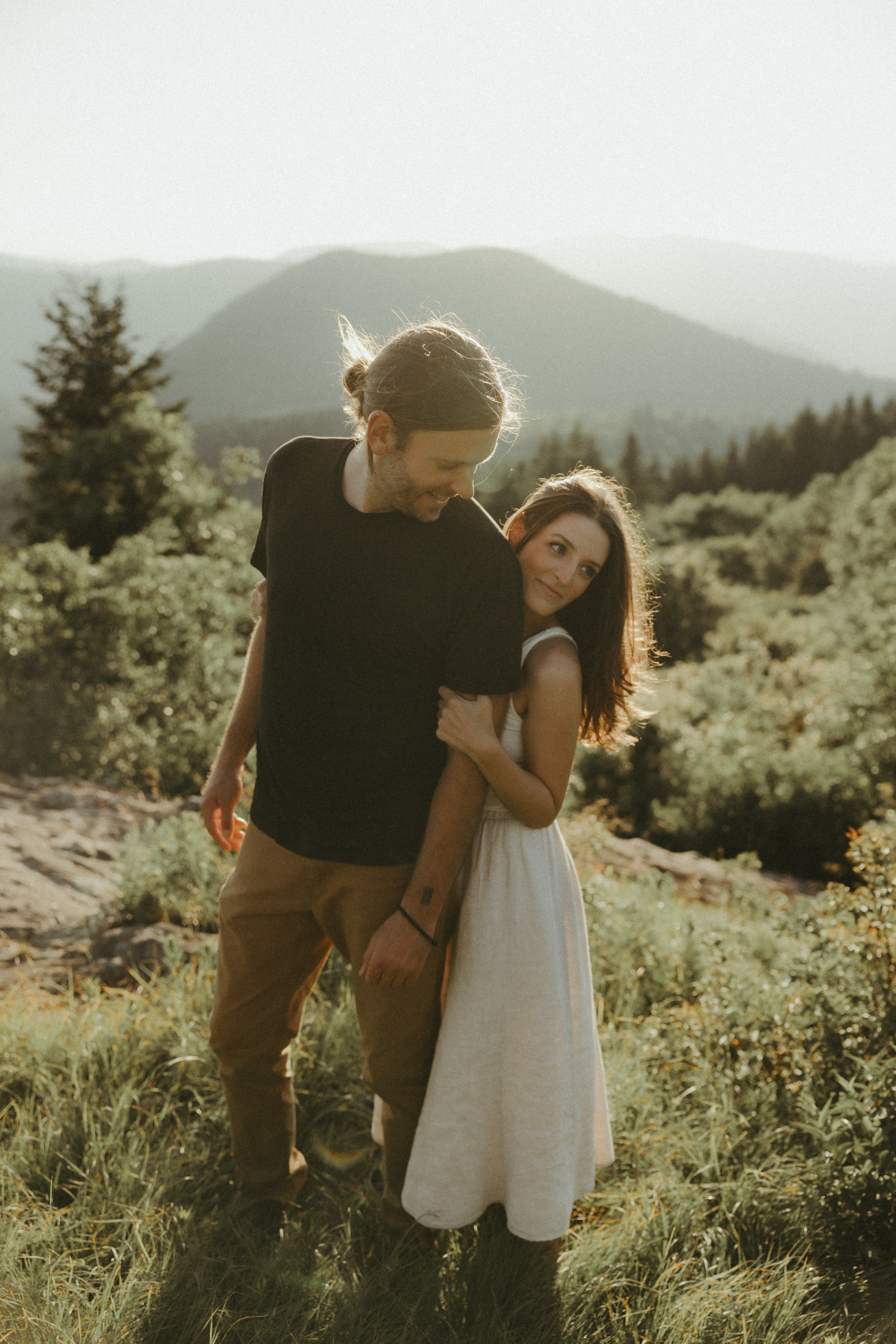Sunset up there is alwaysss worth the effort. The light is a golden glow that feels almost surreal. Maggie’s skirt played the wind perfectly and she and David were so flirty and cute up on the mountain.
