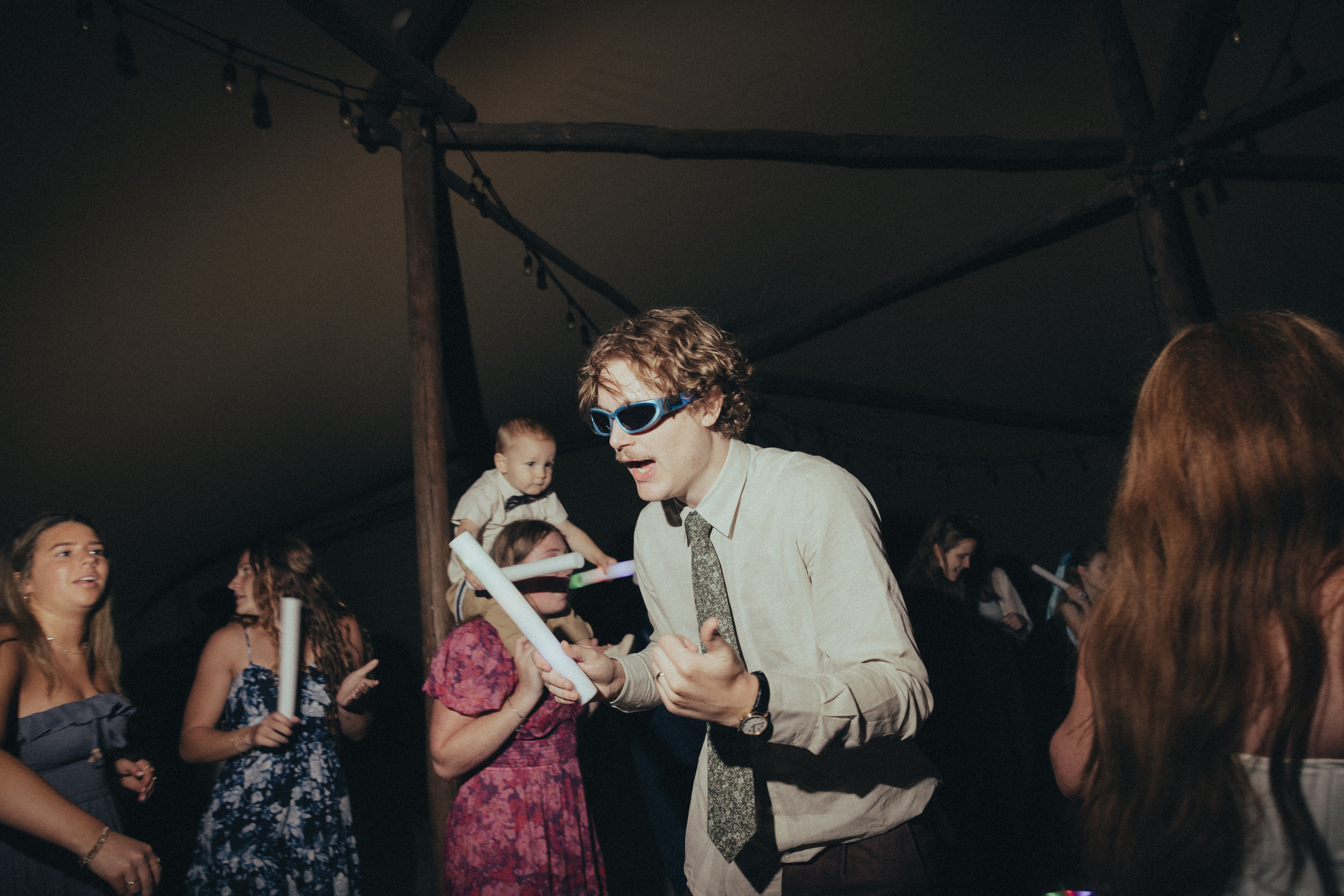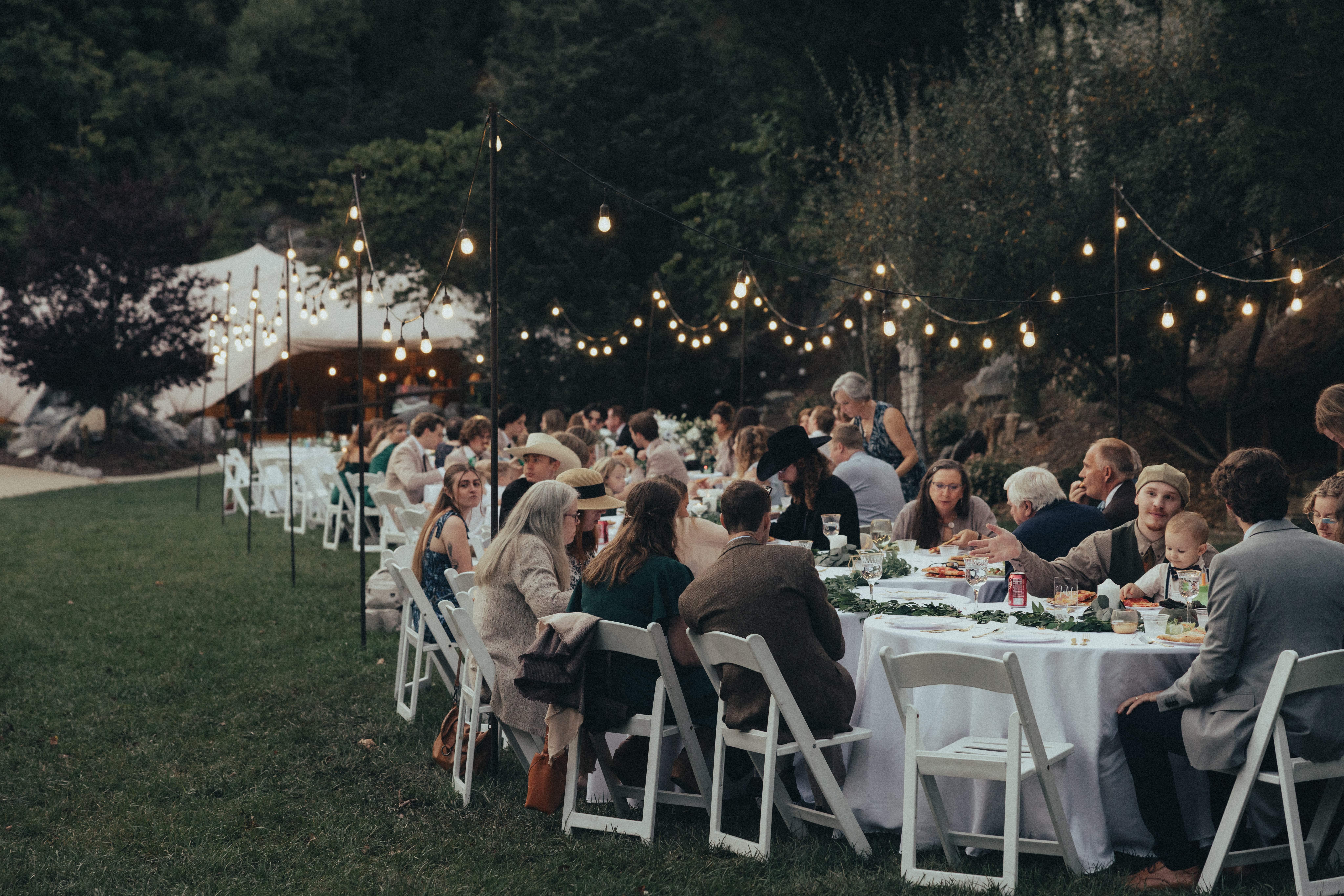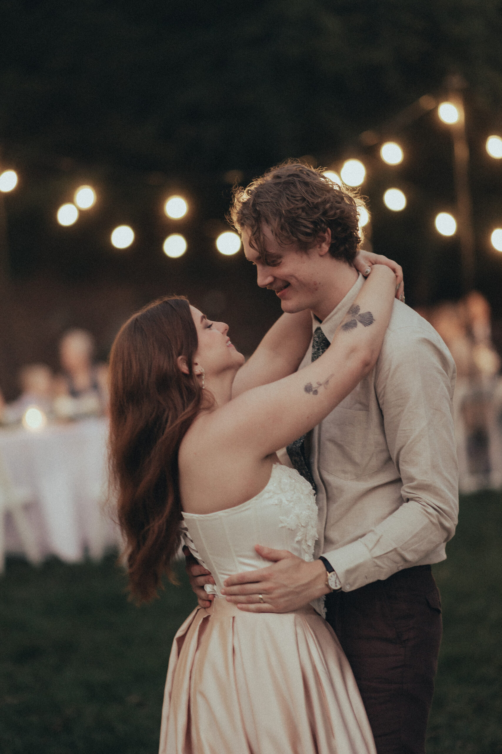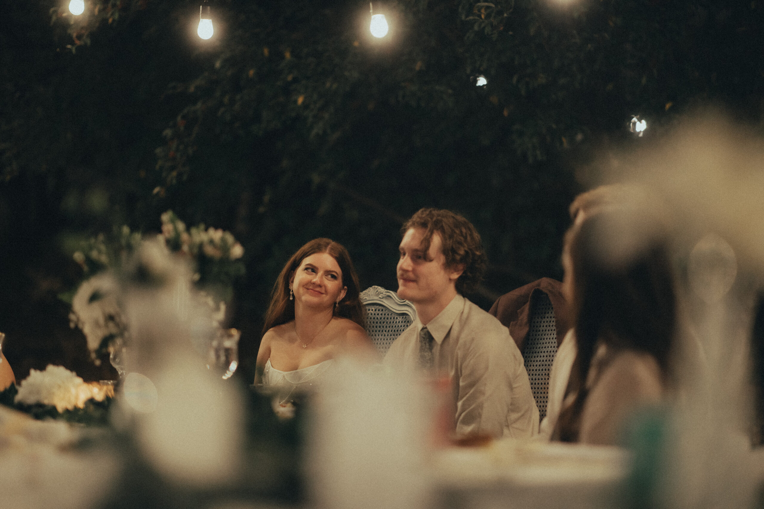 After their ceremony, the night flowed into the kind of celebration that was very “them”. A live jazz band playing under string lights, the smell of fresh pizza drifting through the open-air reception space, and their closest people dancing long after the sun slipped behind the trees.