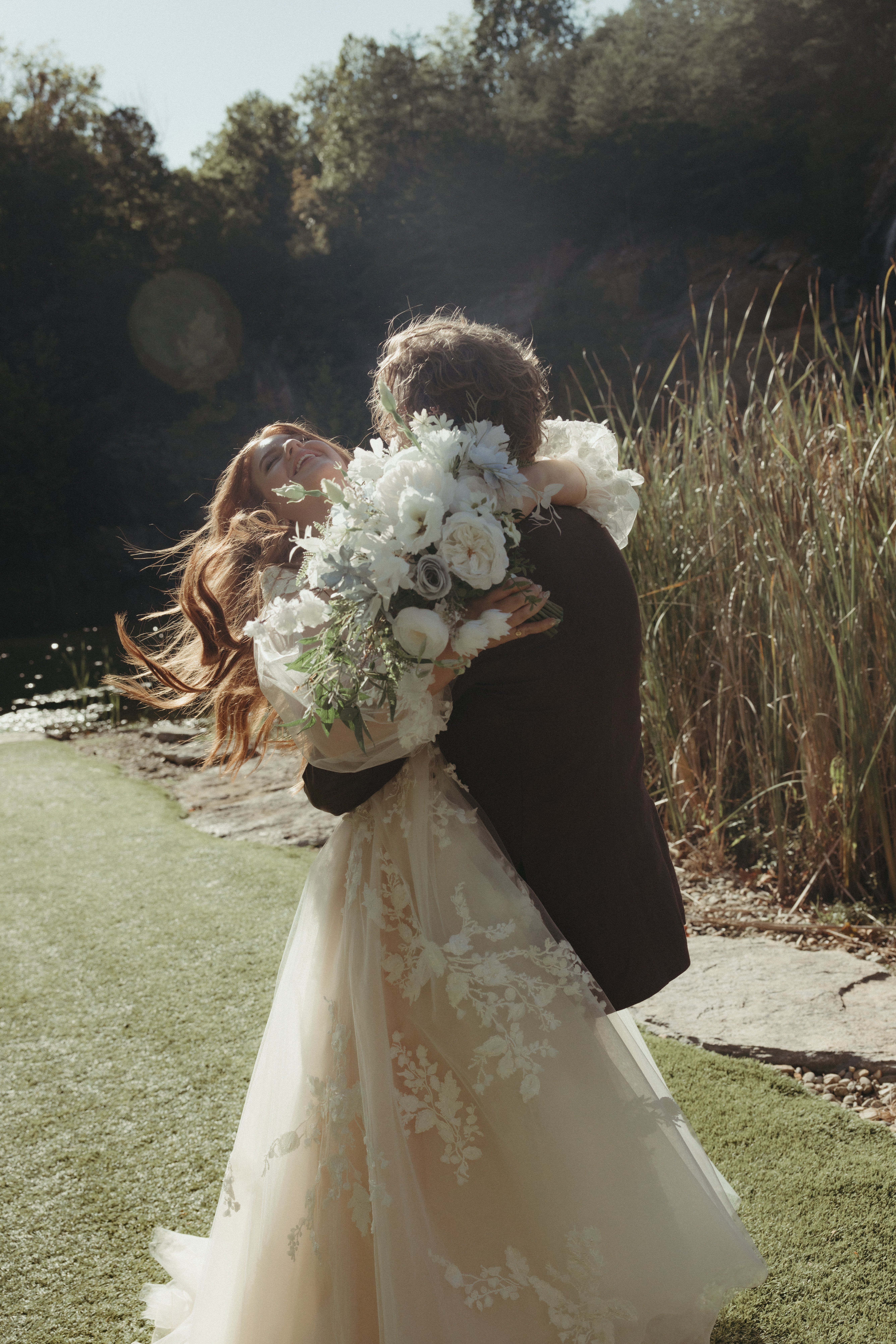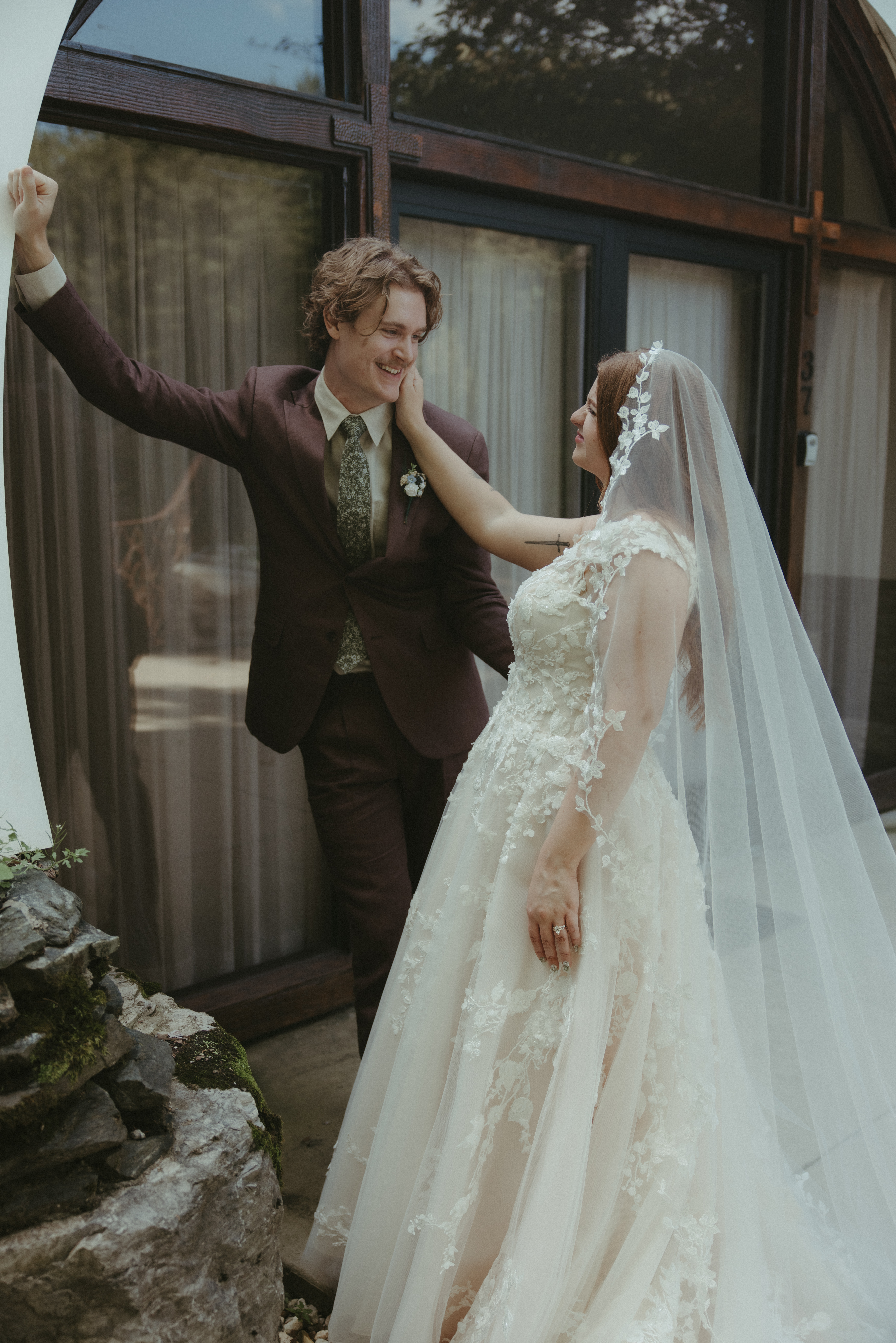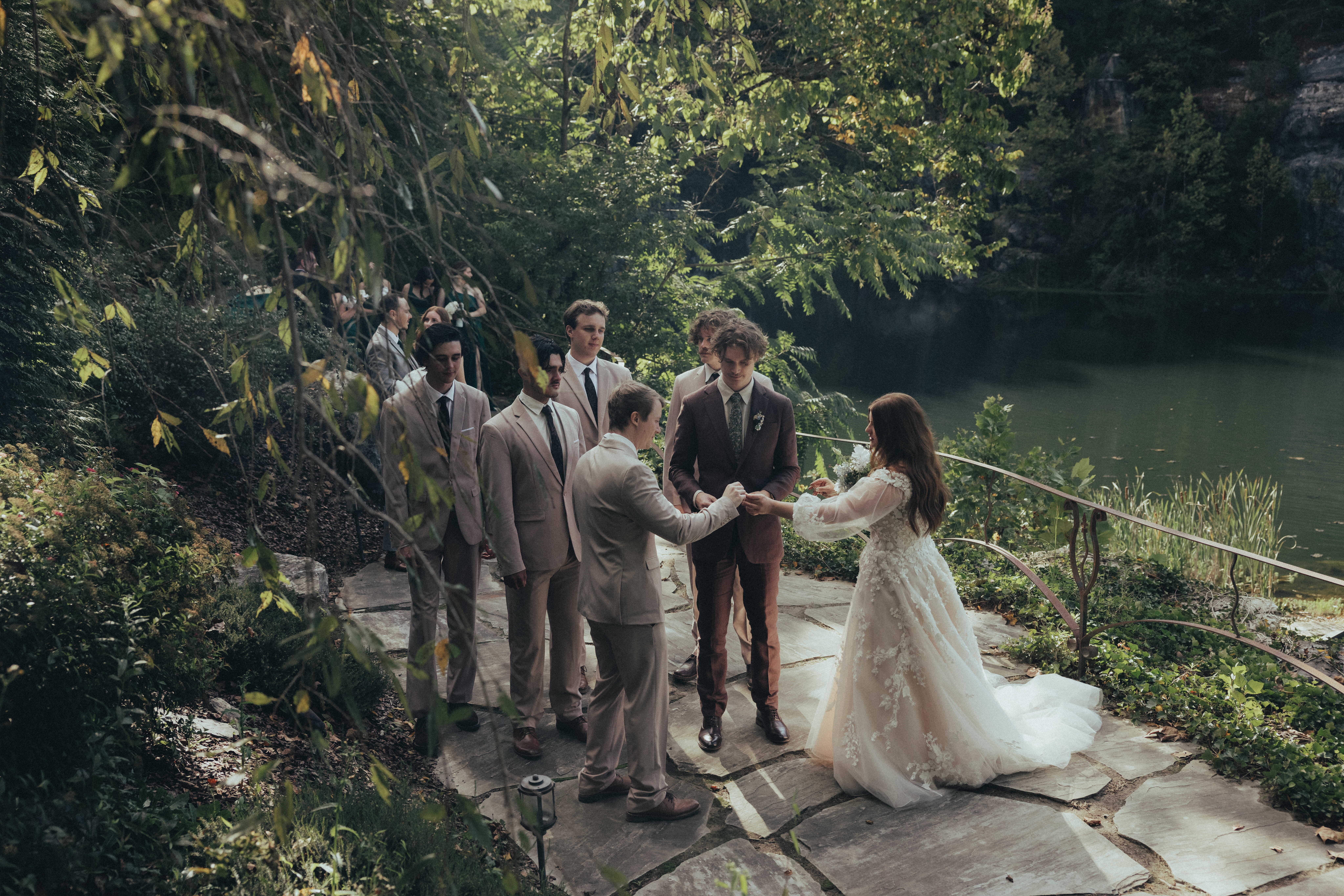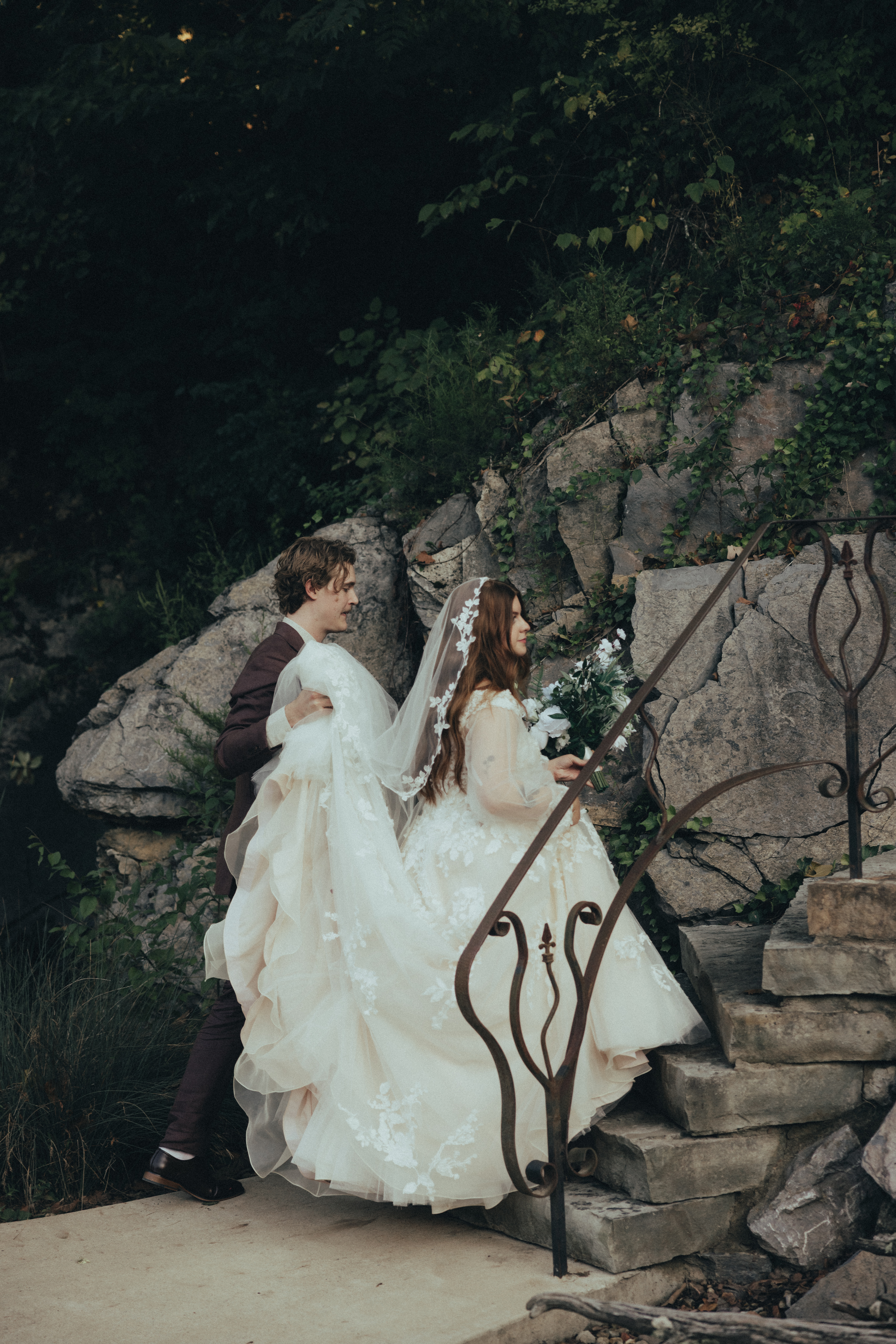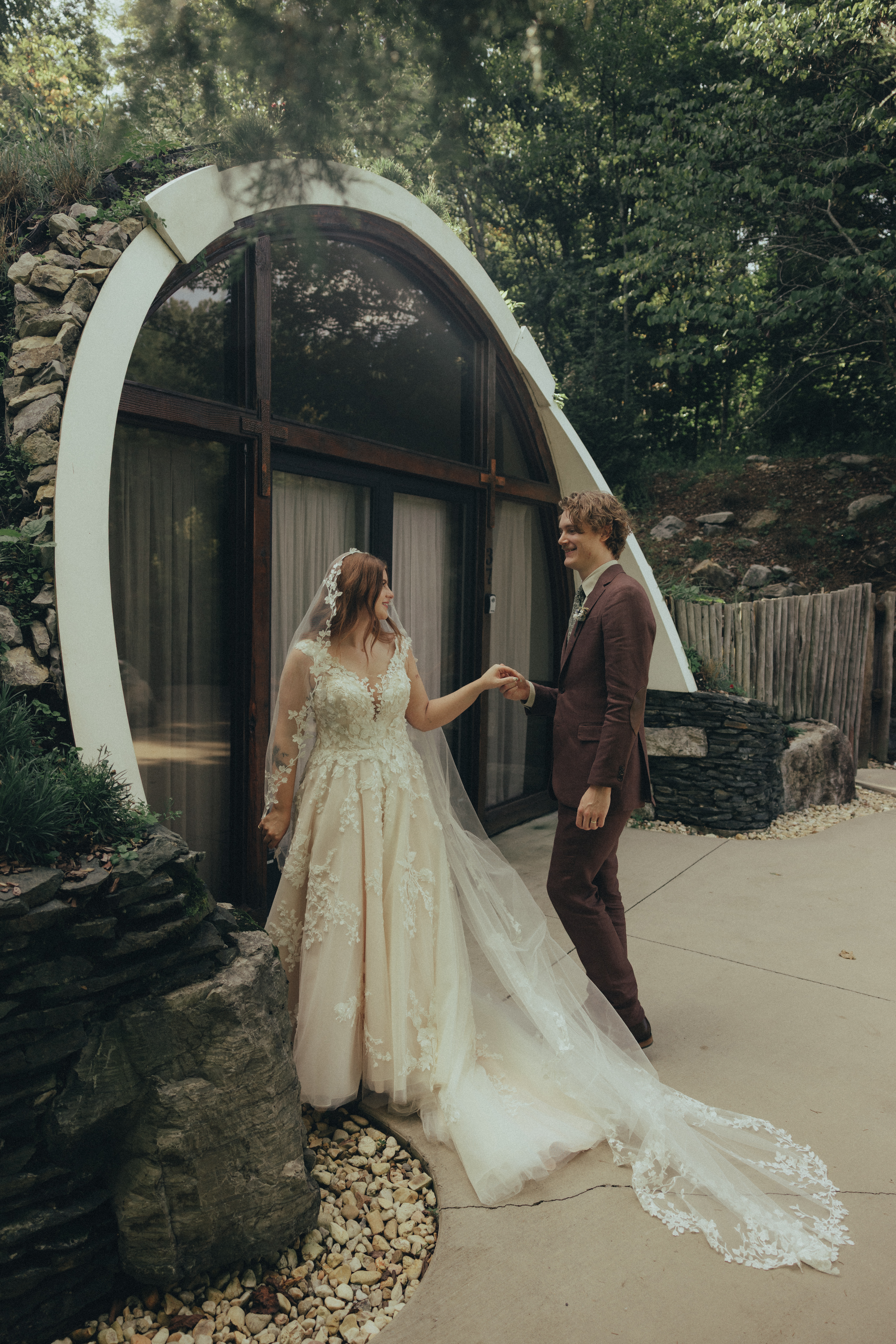 This fairytale wedding at Waterstone Venue in Tennessee is unlike anything else. Tucked into the woods, the venue feels like stepping into a fairytale.. hobbit-style lodging carved into the landscape, cozy stone pathways, and the most enchanting treehouse suite where I was lucky enough to stay at the end of the night. Every corner feels whimsical and warm.