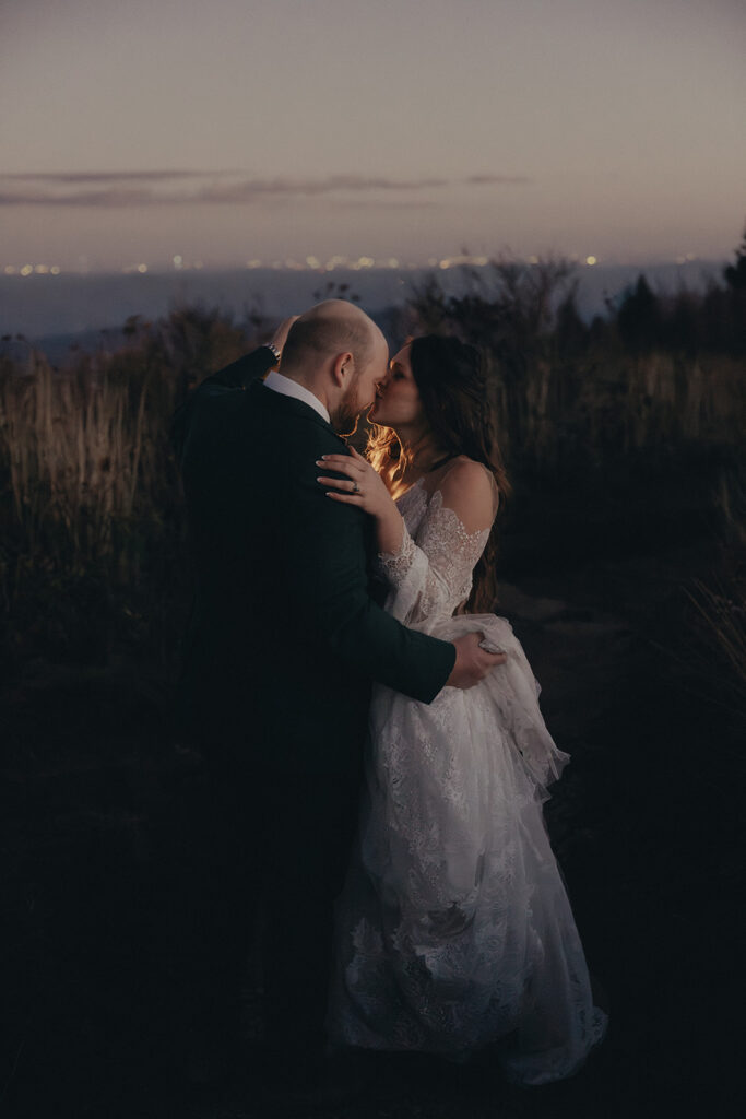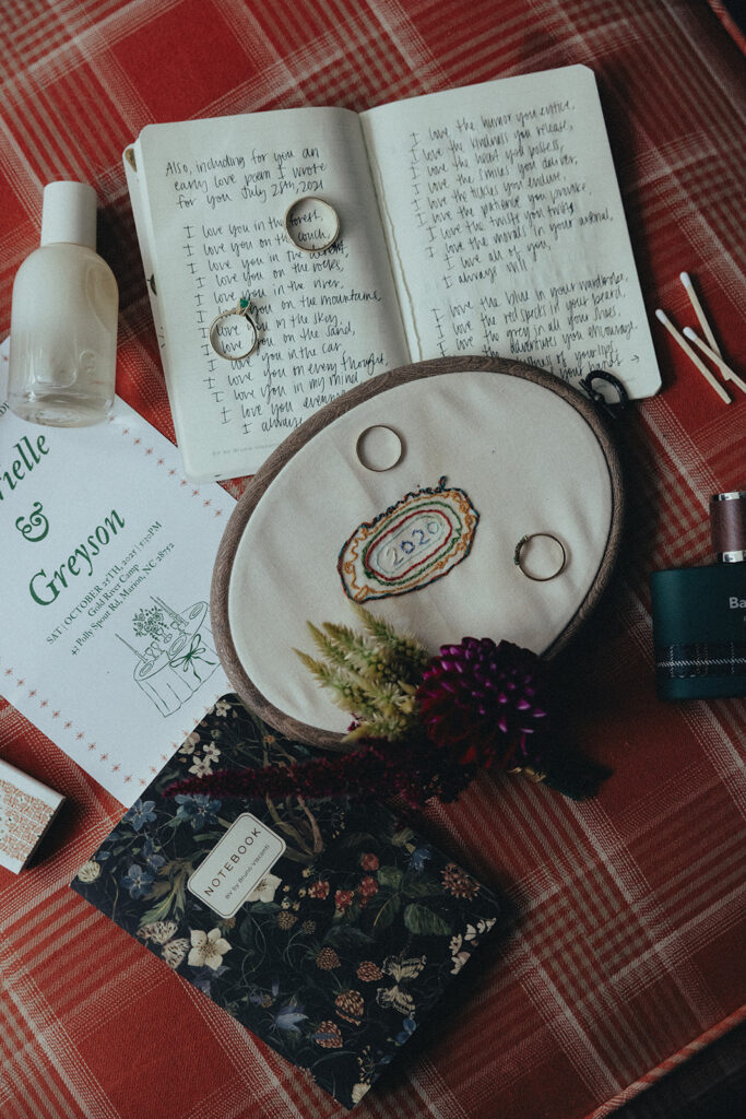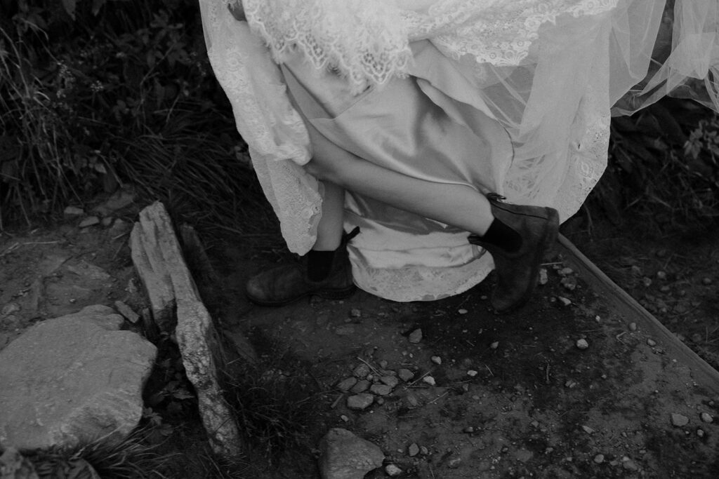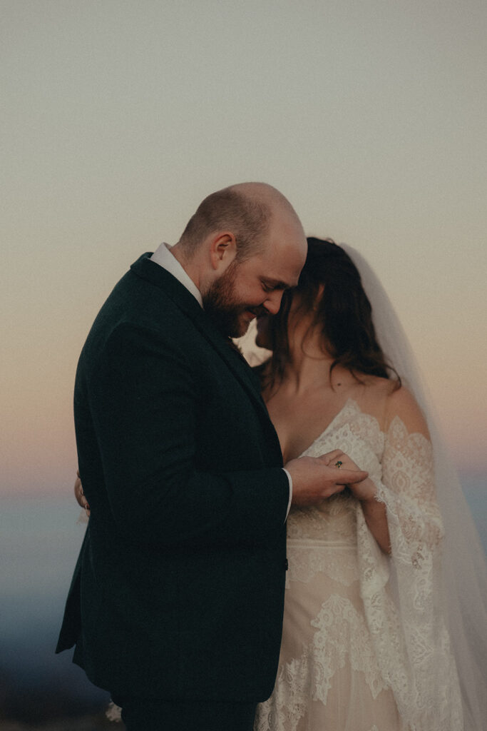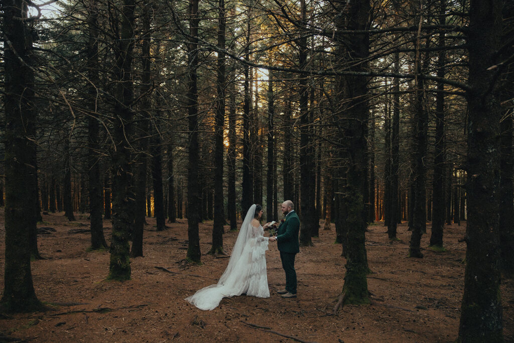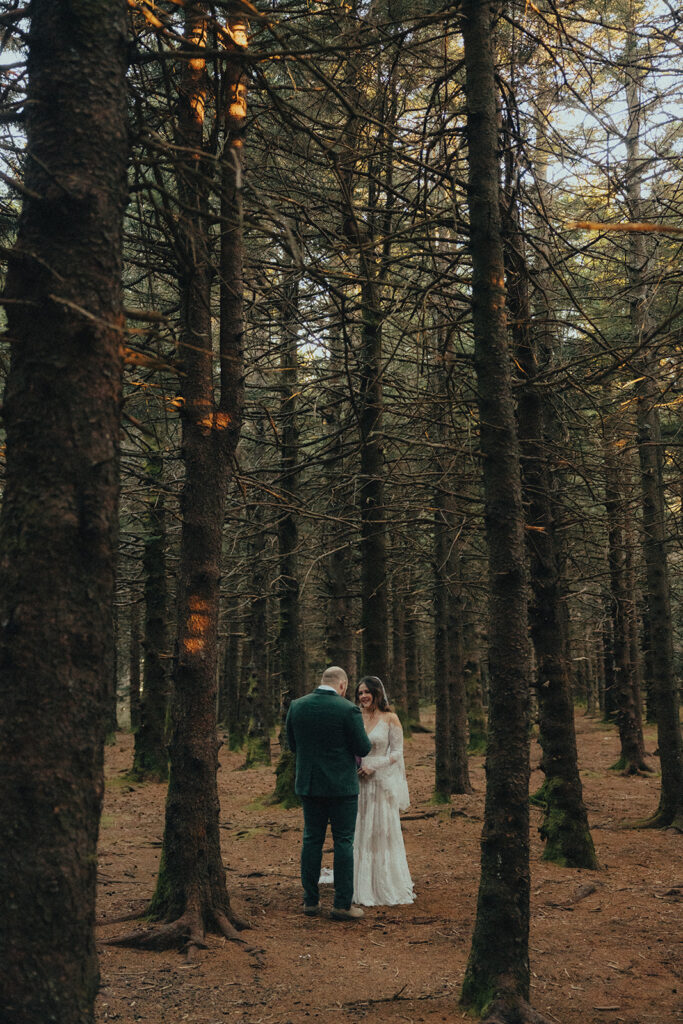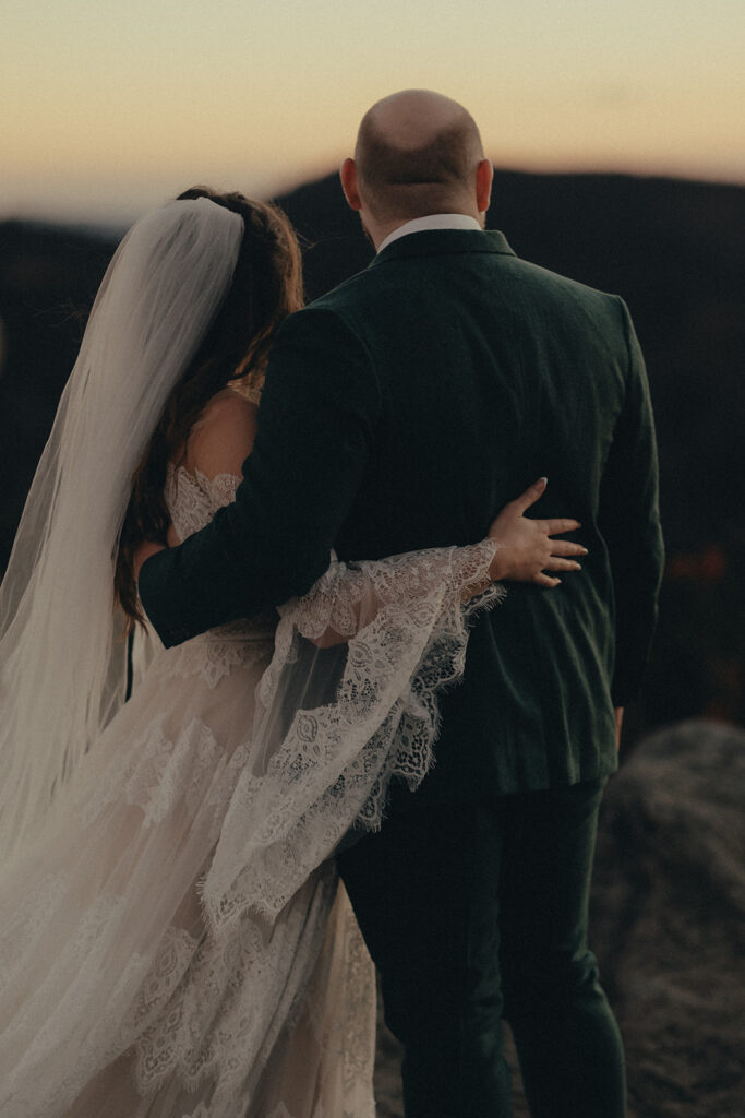 And then, of course, there’s the magic of Asheville woven into it all. They got ready at home, together, alongside two of their closest friends. They laced up their well-loved Blundstones (with a story of their own), and we hiked out to exchange vows as the sun dipped below the mountains.
