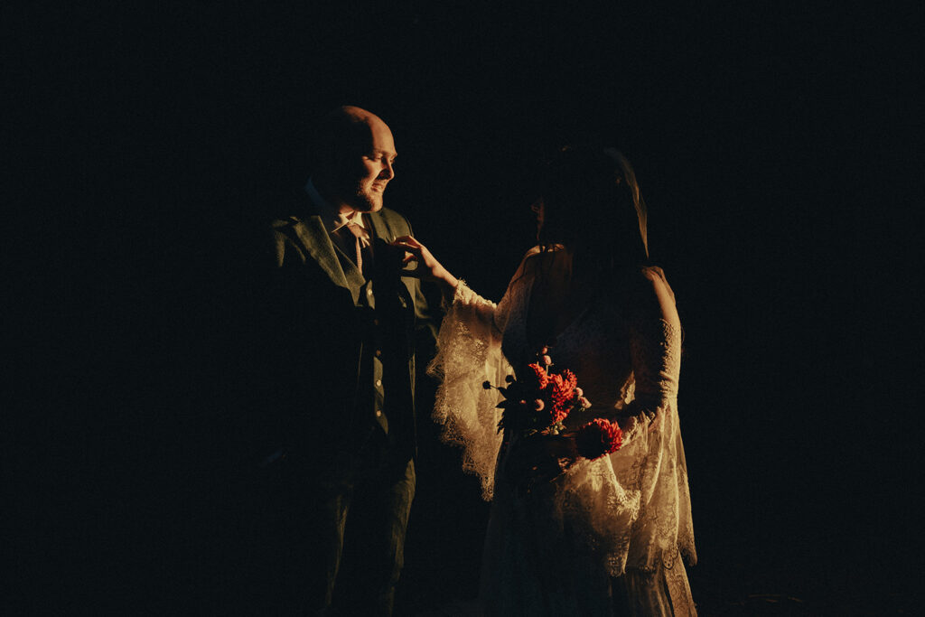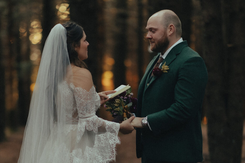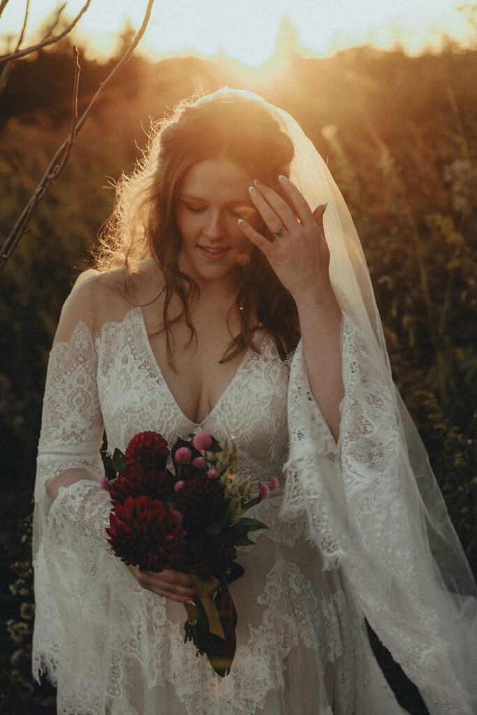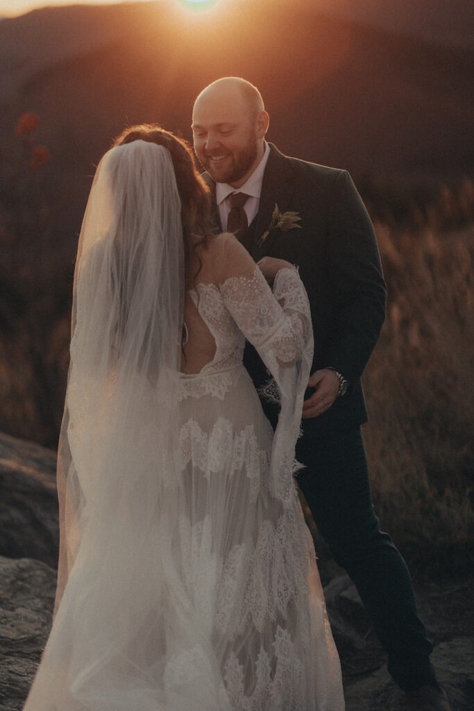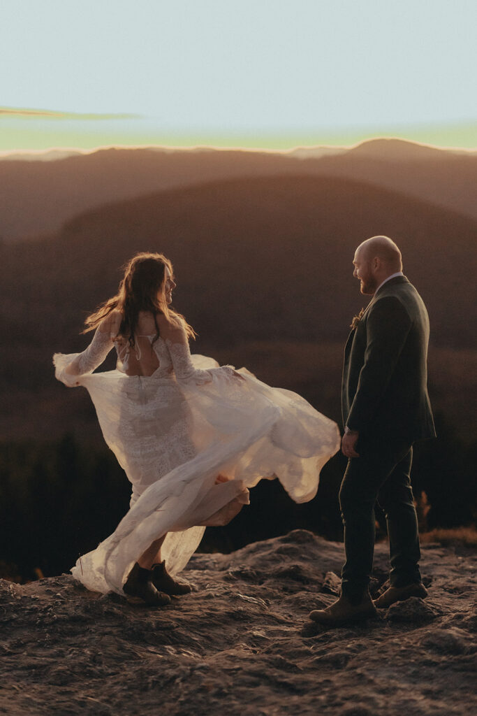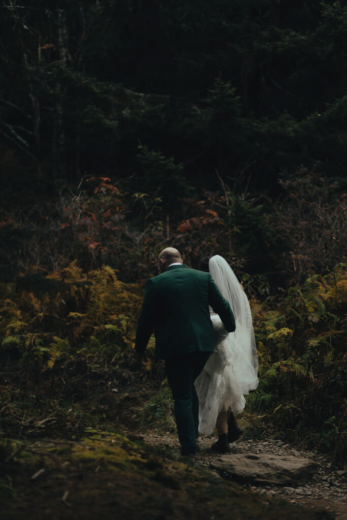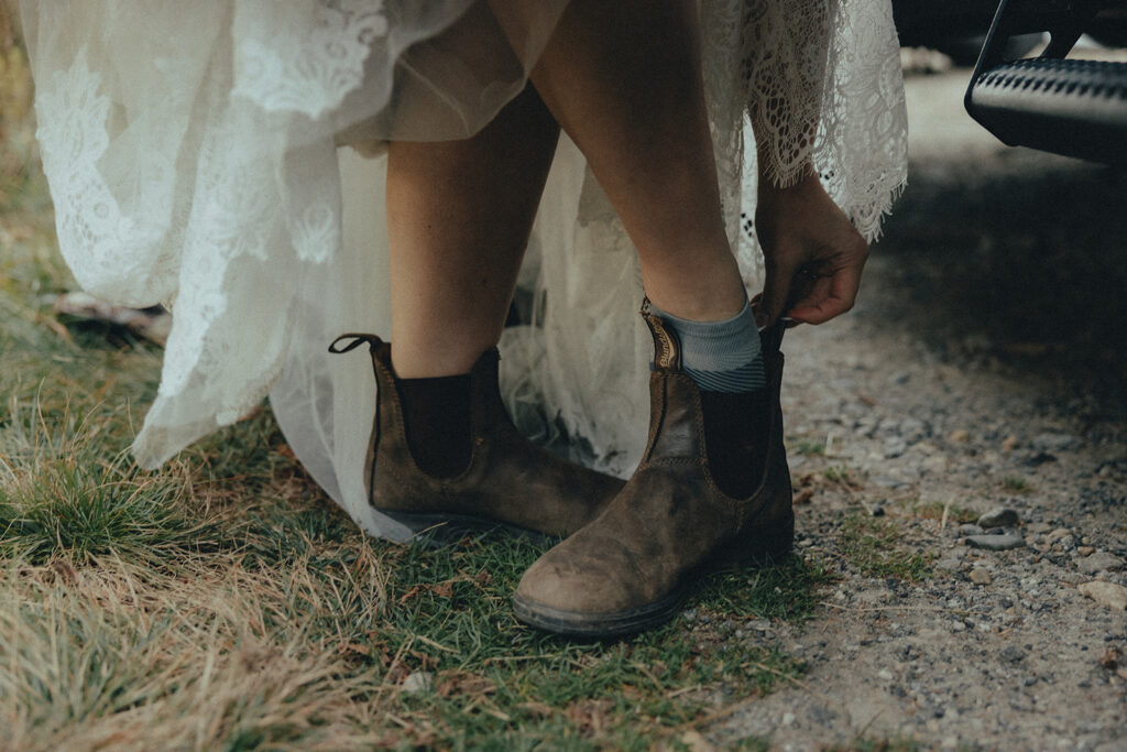 And then, of course, there’s the magic of Asheville woven into it all. They got ready at home, together, alongside two of their closest friends. They laced up their well-loved Blundstones (with a story of their own), and we hiked out to exchange vows as the sun dipped below the mountains.