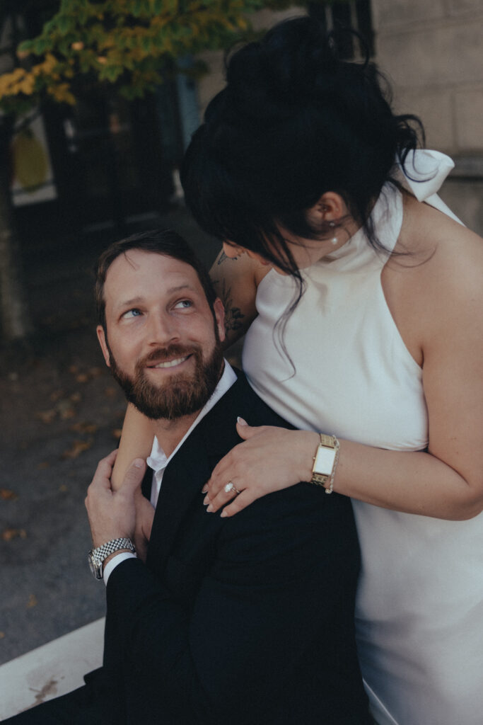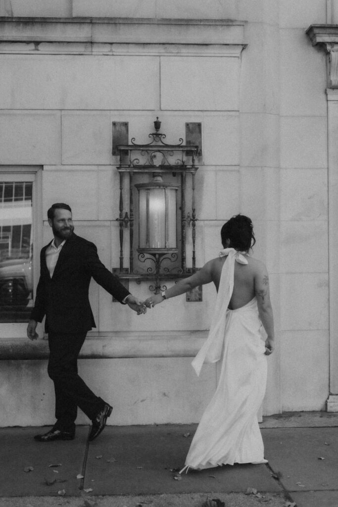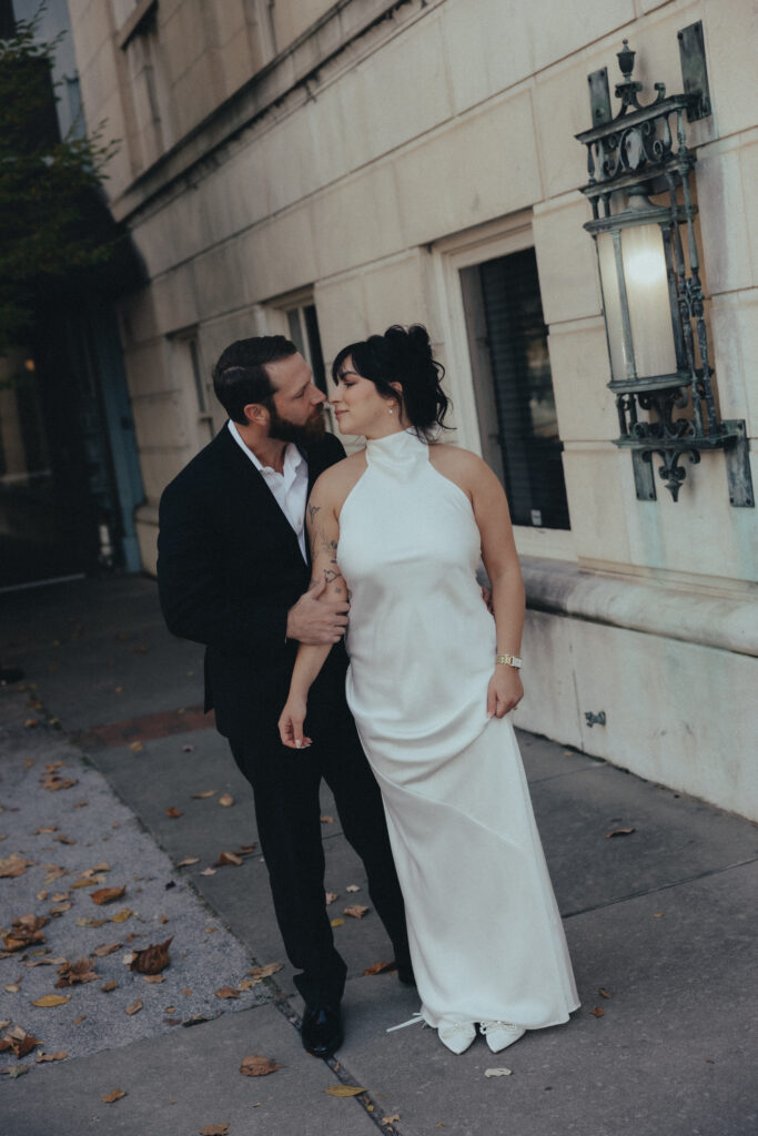 While this couple officially said their vows at the Buncombe County Courthouse, we couldn’t resist stepping just a few blocks away for portraits in front of one of Asheville’s most iconic modern buildings—the Asheville Art Museum. The clean lines, striking architecture, and cultural significance make it an incredible backdrop for wedding photos.