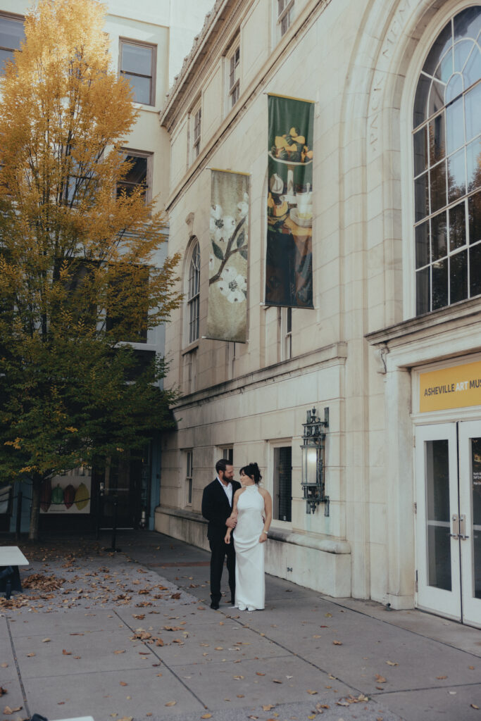 Even though this wasn’t technically an Asheville Art Museum wedding, photographing in front of the museum only reinforced how stunning it would be as a full wedding venue. The museum’s contemporary architecture, natural light, and central location make it an ideal space for couples who love art, culture, and intentional design.